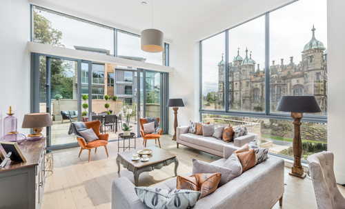 “Another thing which creates a true feature here is the vast greenery of the estate and the spectacular views. The Crescent is blessed by its location, embracing the original Donaldson’s building and offering views across the 18 acre estate, and to the Pentlands beyond.