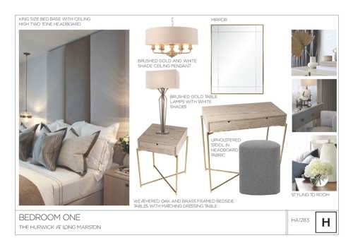 “Moving upstairs I’ve tried to bring a luxury ‘hotel’ feel to the first two rooms, with a ceiling high two-toned headboard in the master bedroom with weathered oak and brass bedside tables and matching dressing table.