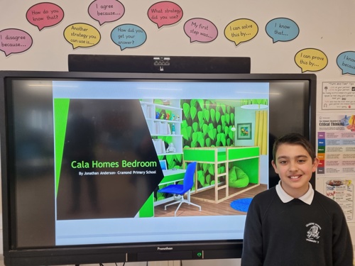 Jonathan Anderson, 11, was announced as the winner of the design competition coordinated by Cramond Primary, Cala Homes (East), and interior designers Envision, after he wowed with his striking rainforest-themed digital mood board.