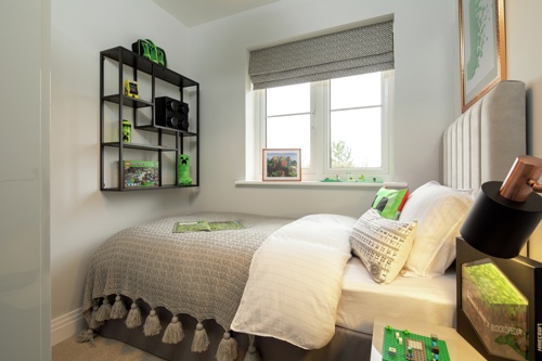 My favourite room is the Minecraft-themed bedroom. Themed children’s rooms are always really fun to design and Minecraft is so popular at the moment. We incorporated the greens and browns synonymous with the game as well as using square and rectangular furniture and linear motifs in the fabrics.
