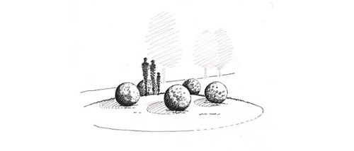 The rich soil of the local countryside has attracted farming and agriculture since ancient times and seeds like the popular ‘Kelvedon Wonder Pea’ helped make the town prosperous and famous in the Victorian era. This ‘Pod of Peas’ design pays homage to that heritage. A series of human scale spherical steel ‘peas’ around an open space which can be used for meeting, seating or play.