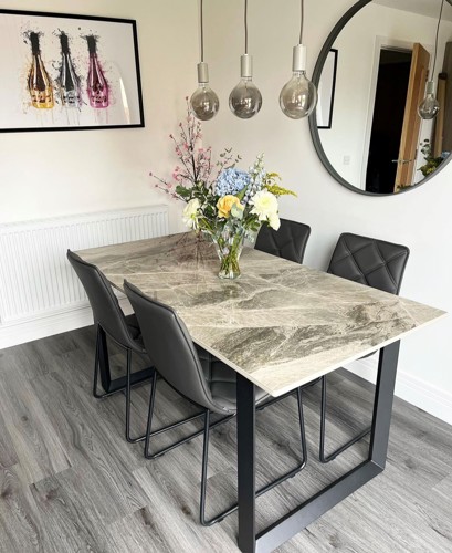 We are both fans of grey and have kept the colour scheme very modern throughout the house. Everything from the kitchen cabinets, the bedroom wardrobes to the bathroom vanities have been matched to our grey flooring throughout the house. The sales team had a number of samples for us to choose from in the showhome, and that helped us make up our minds up very quickly.