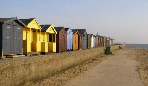Breathe in some fresh sea air at Brightlingsea beach, quintessential British seaside lined with colourful beach huts, perfect for a family day out.