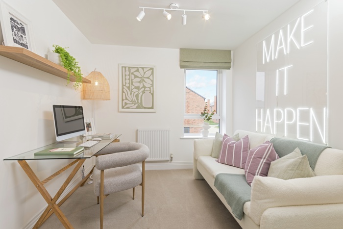 The right lighting is crucial for any office, no matter where it’s located in your home. Good lighting serves two purposes: it helps maintain focus and keeps you in the right frame of mind for work, while also protecting your eye health. If possible, place your desk near a window. Natural light not only boosts concentration but also ensures you get some much-needed vitamin D. Ceiling lights are ideal, especially in the winter months when days are shorter. Additionally, a standard or desk lamp with a warm bulb can create a cosy atmosphere, reducing eye strain when reading small print, books, or working on your computer.