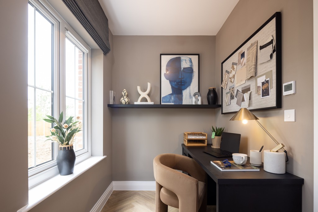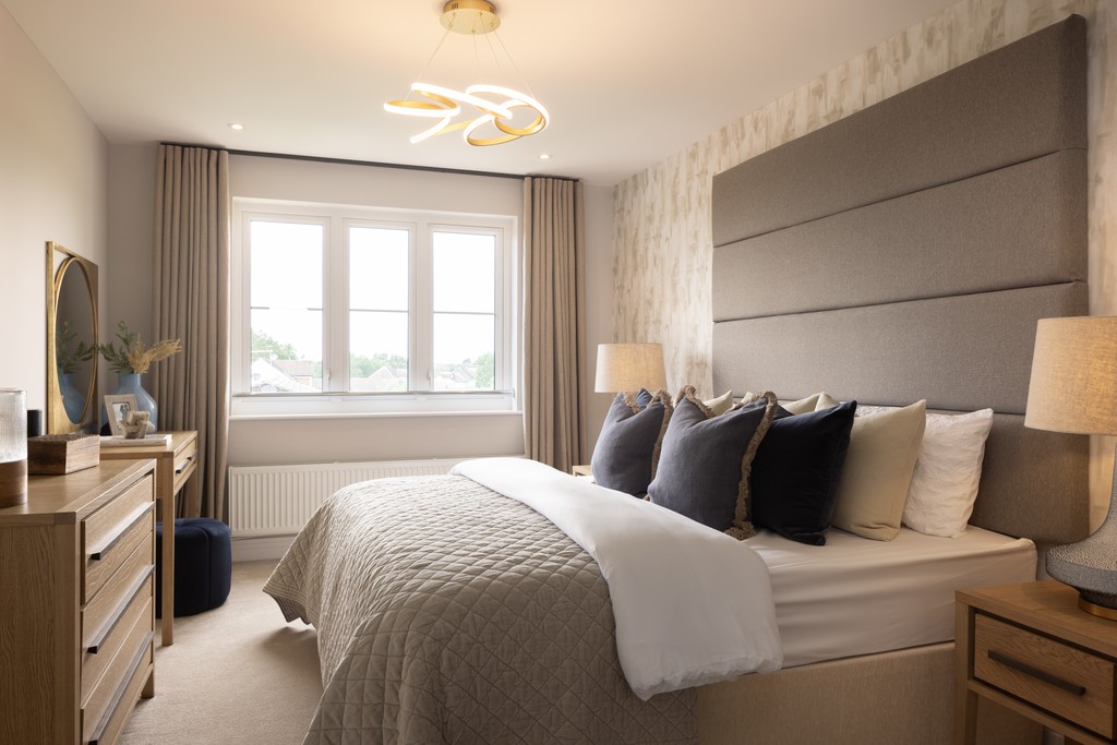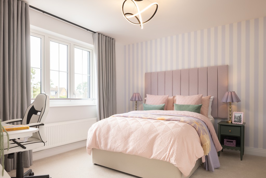 The Wishbone is a spacious five-bedroom detached home with an integrated garage, thoughtfully designed to offer comfort, accessibility, and modern family living. The open-plan kitchen, dining, and family room features two sets of bi-fold doors that open to the garden, creating a bright and sociable space for everyday life and entertaining. A generous sitting room with a bay window adds a cosy retreat, while the large utility room provides direct access to both the garden and kitchen. The ground floor also includes a spacious WC for added convenience.