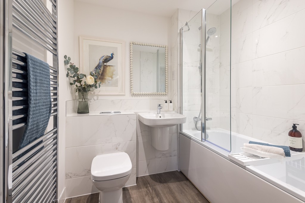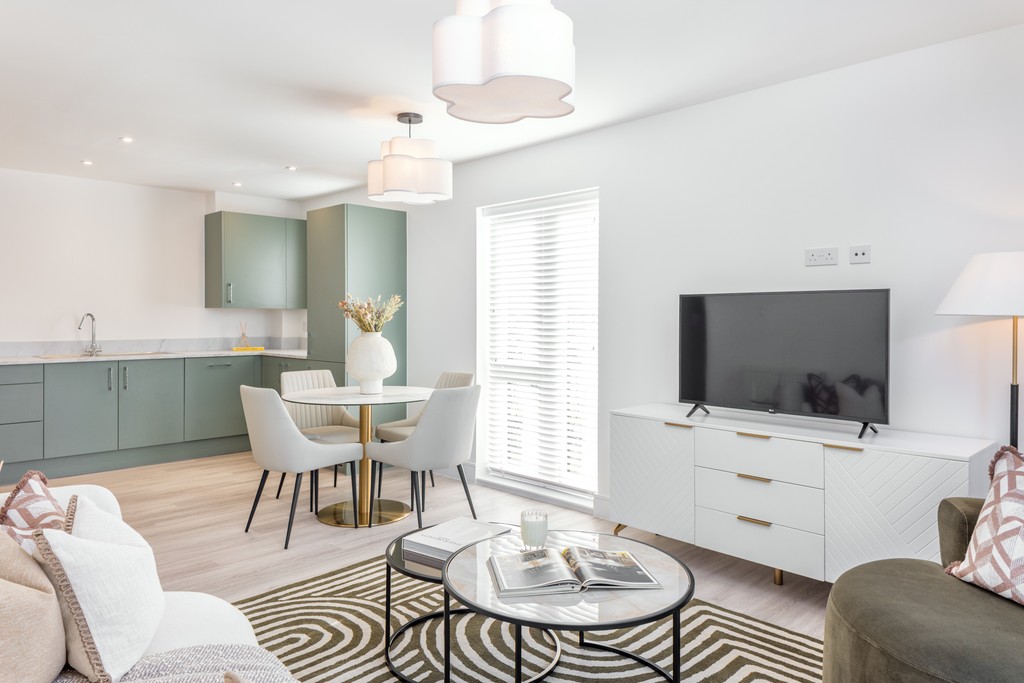 This 667 sq. ft two-bedroom ground floor apartment offers a spacious open-plan kitchen and living area, ideal for both relaxing and entertaining. The main bedroom features an en-suite and built-in wardrobe, while the second bedroom benefits from its own storage and access to a separate family bathroom.