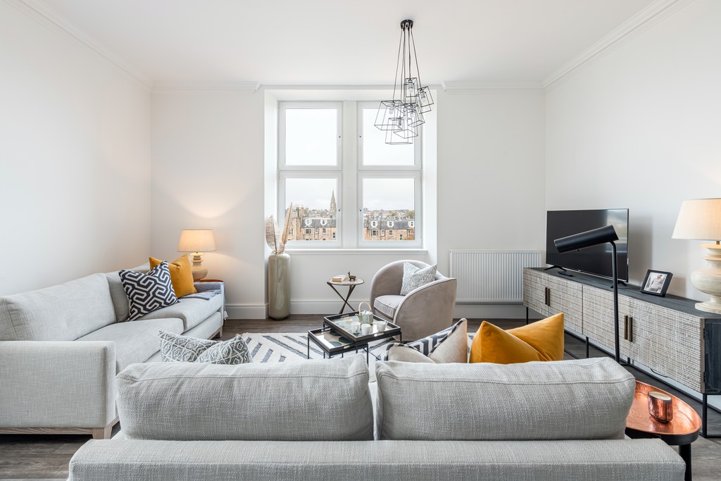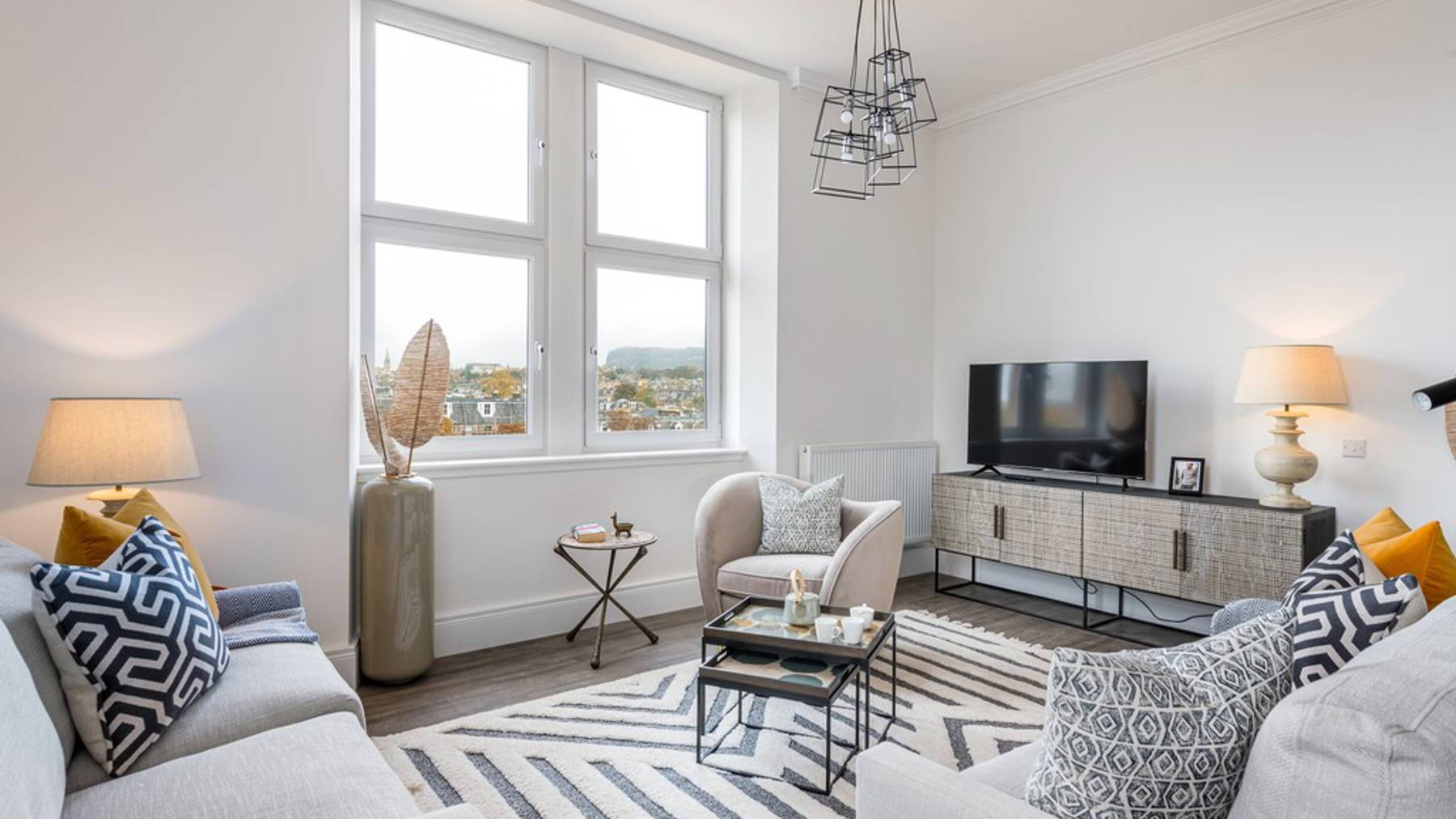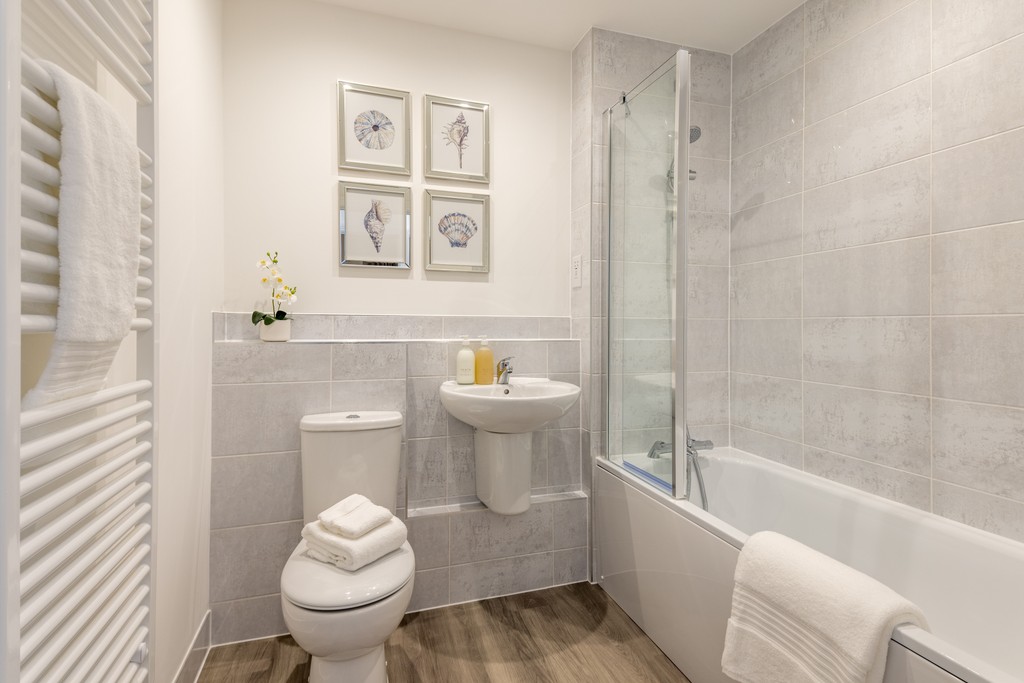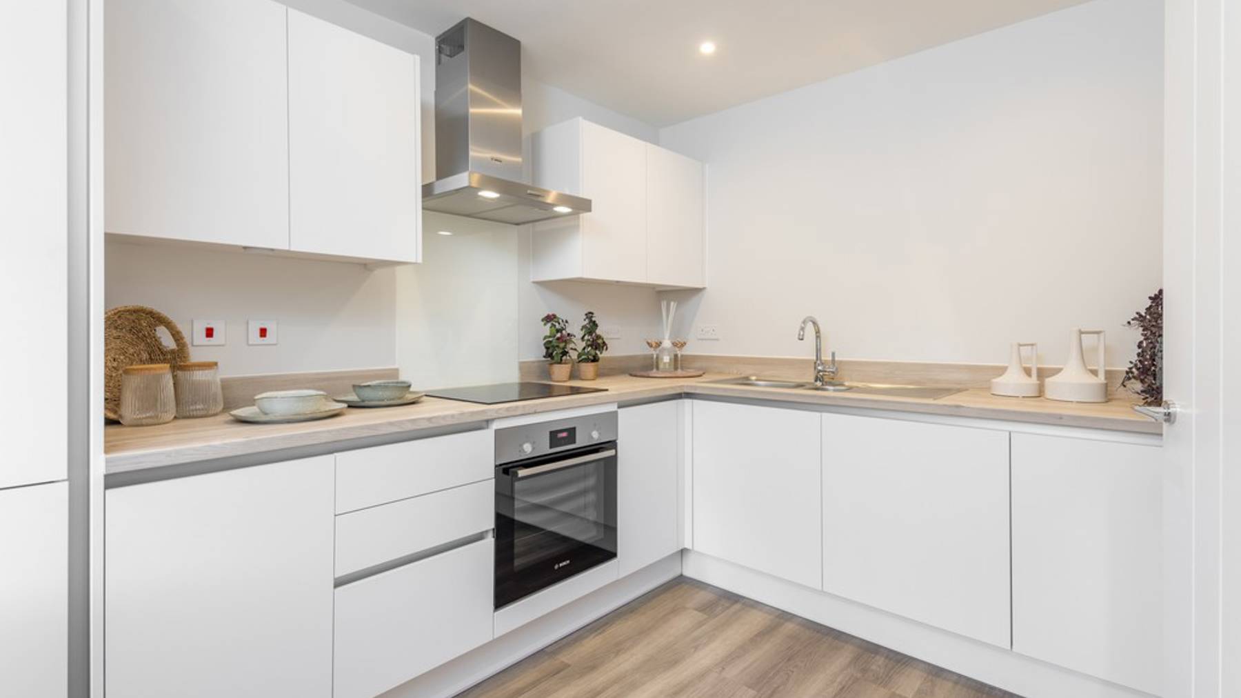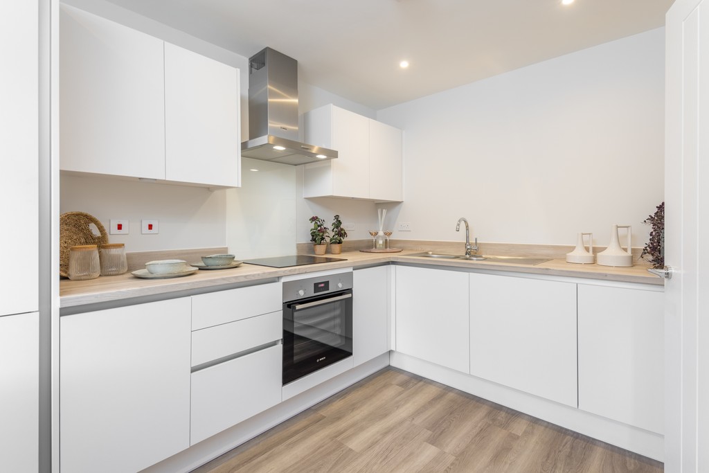 This 667 sq. ft two-bedroom second floor apartment offers a spacious open-plan kitchen and living area, ideal for both relaxing and entertaining. The main bedroom features an en-suite and built-in wardrobe, while the second bedroom benefits from its own storage and access to a separate family bathroom.