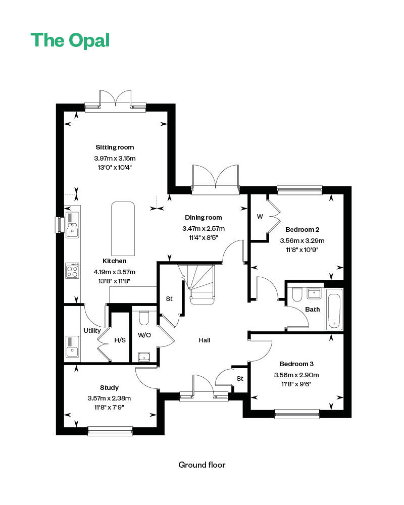 Welcome to The Opal, a beautifully designed 3-bedroom detached chalet bungalow that combines spacious living with thoughtful functionality. It's well suited to modern family life or anyone looking for a flexible home. The open-plan kitchen, dining, and sitting room forms the heart of the home. It's a welcoming space for entertaining, sharing meals, or enjoying a quiet evening. A generous study offers a dedicated area for working from home or exploring personal interests. A utility room and downstairs WC add everyday convenience.