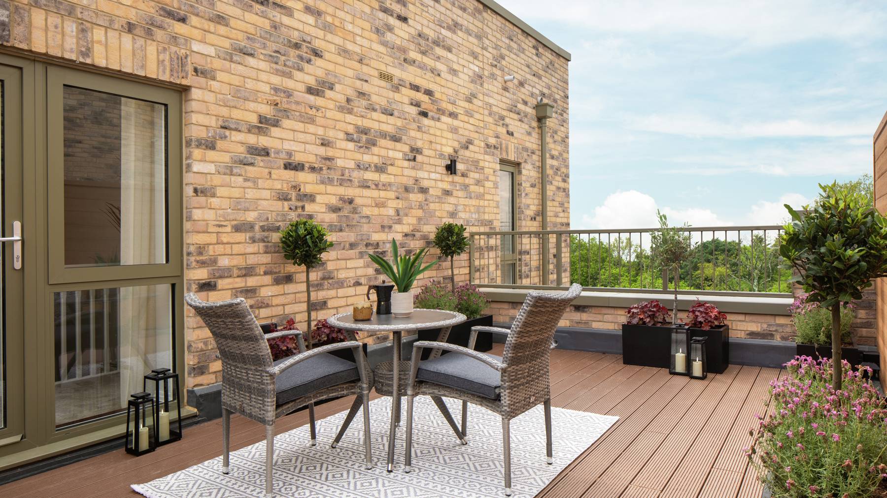 One of the two bedrooms on this floor is en suite and comes with fitted wardrobes, while up on the second floor you have a real treat waiting for you – a private terrace, away from it all and perfect for taking a moment out: or maybe working out, with an outdoor gym? And two more bedrooms: one could double as a study or hobby room. Whatever suits.