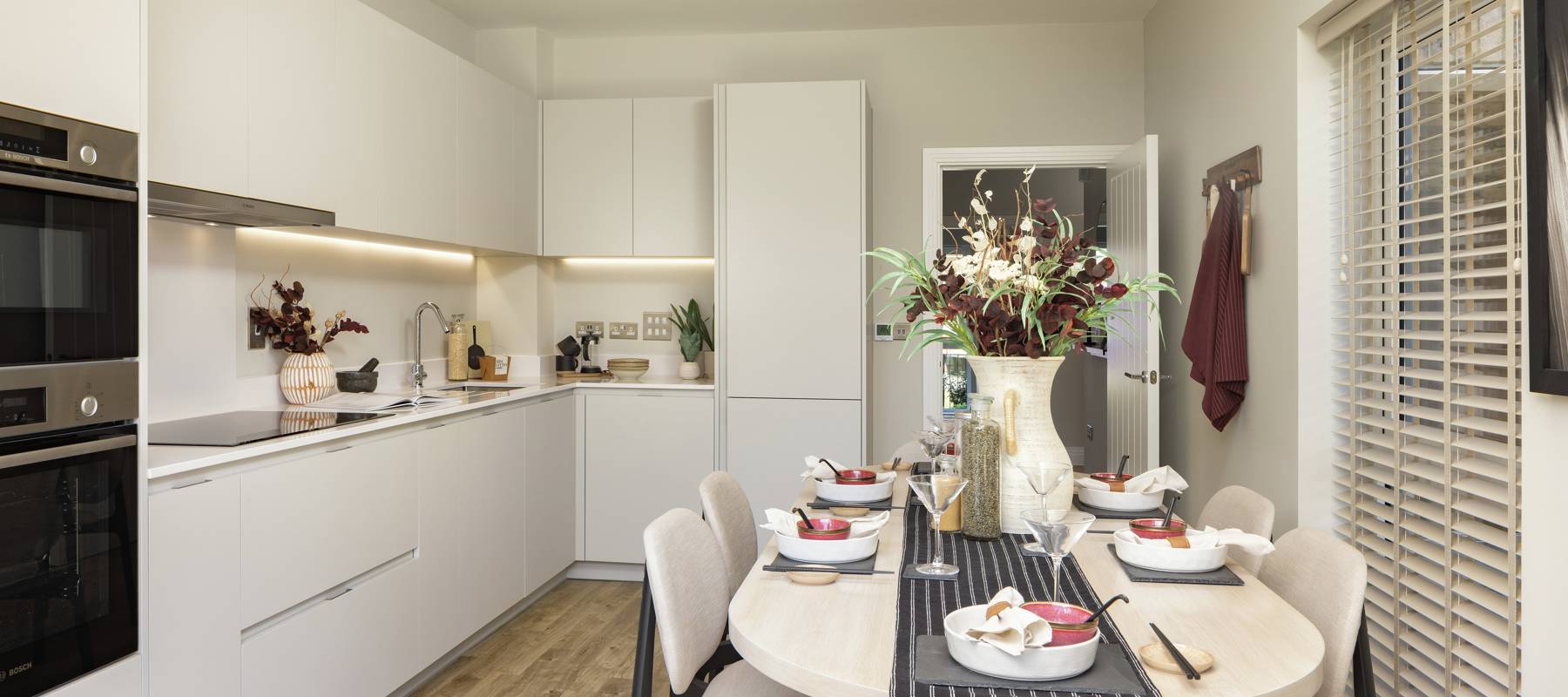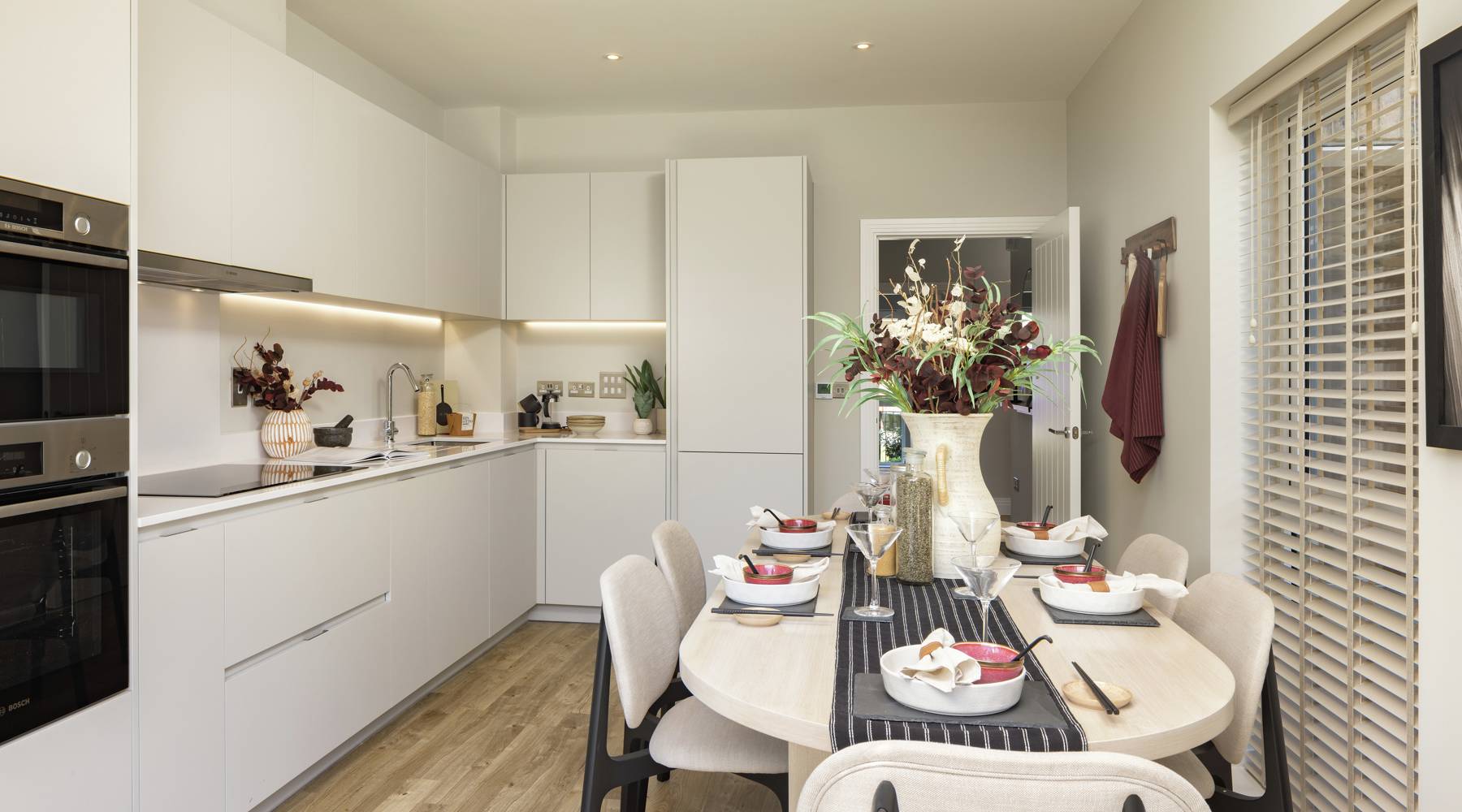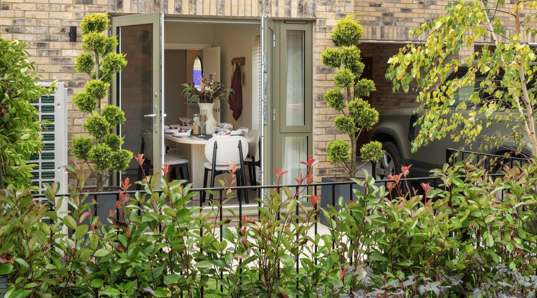 From the moment you step through the front door, you’ll feel a great sense of space. There’s a beautiful fully fitted kitchen to your left, and a dining room that opens out onto the garden for play or entertaining. Cars and cycles are neatly tucked away in their own built-in spaces and up on the first floor there’s room to relax and spend time together in a light-filled sitting room.
