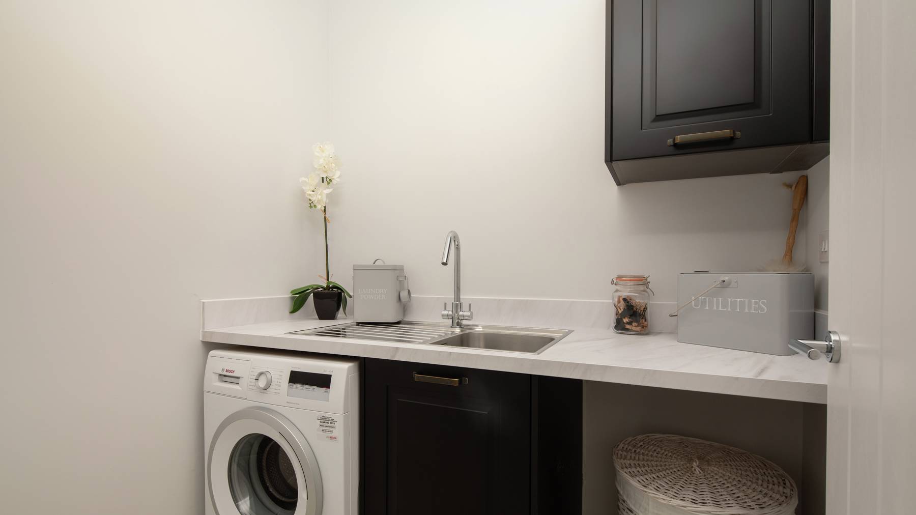 Complete with Silestone to kitchen worktop, Amtico Spacia flooring and carpets throughout and turf to rear garden.