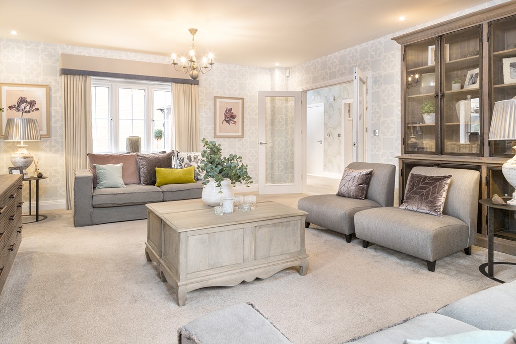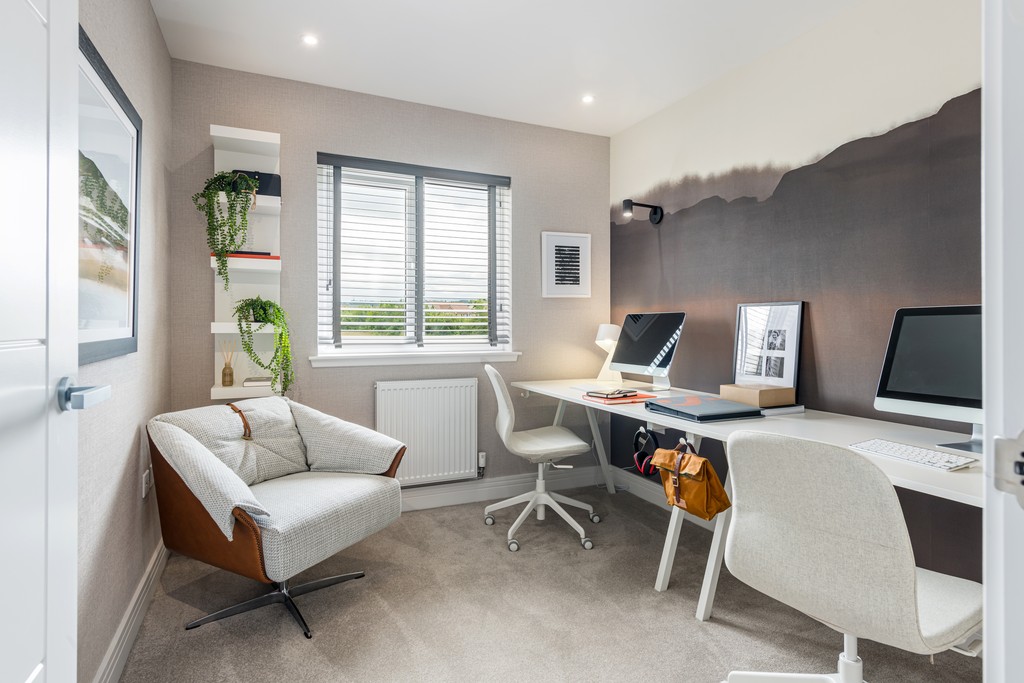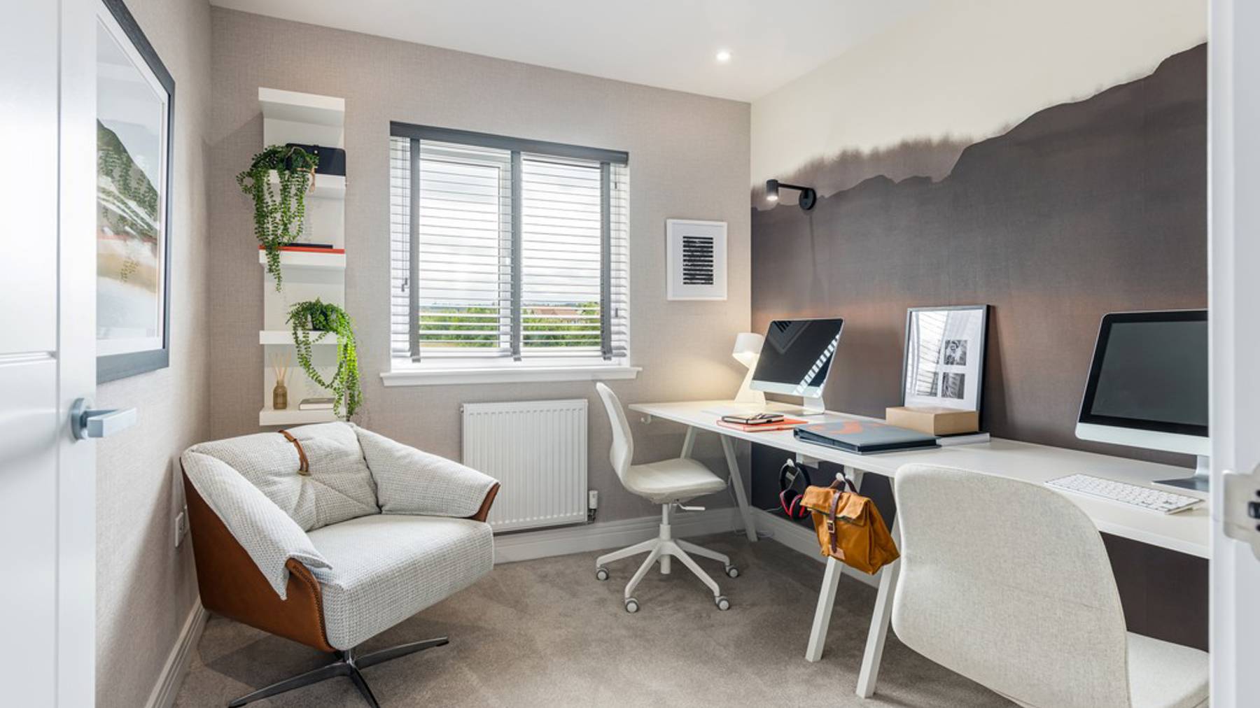 Enjoy flexibility and freedom on three floors, with a fresh and light feel throughout your family home. Down on the ground floor, the well-appointed kitchen/dining room opens out into your garden through patio doors, and there’s a separate study or den – to the front. Your bikes and car have their own places too, with an integrated cycle store and carport.