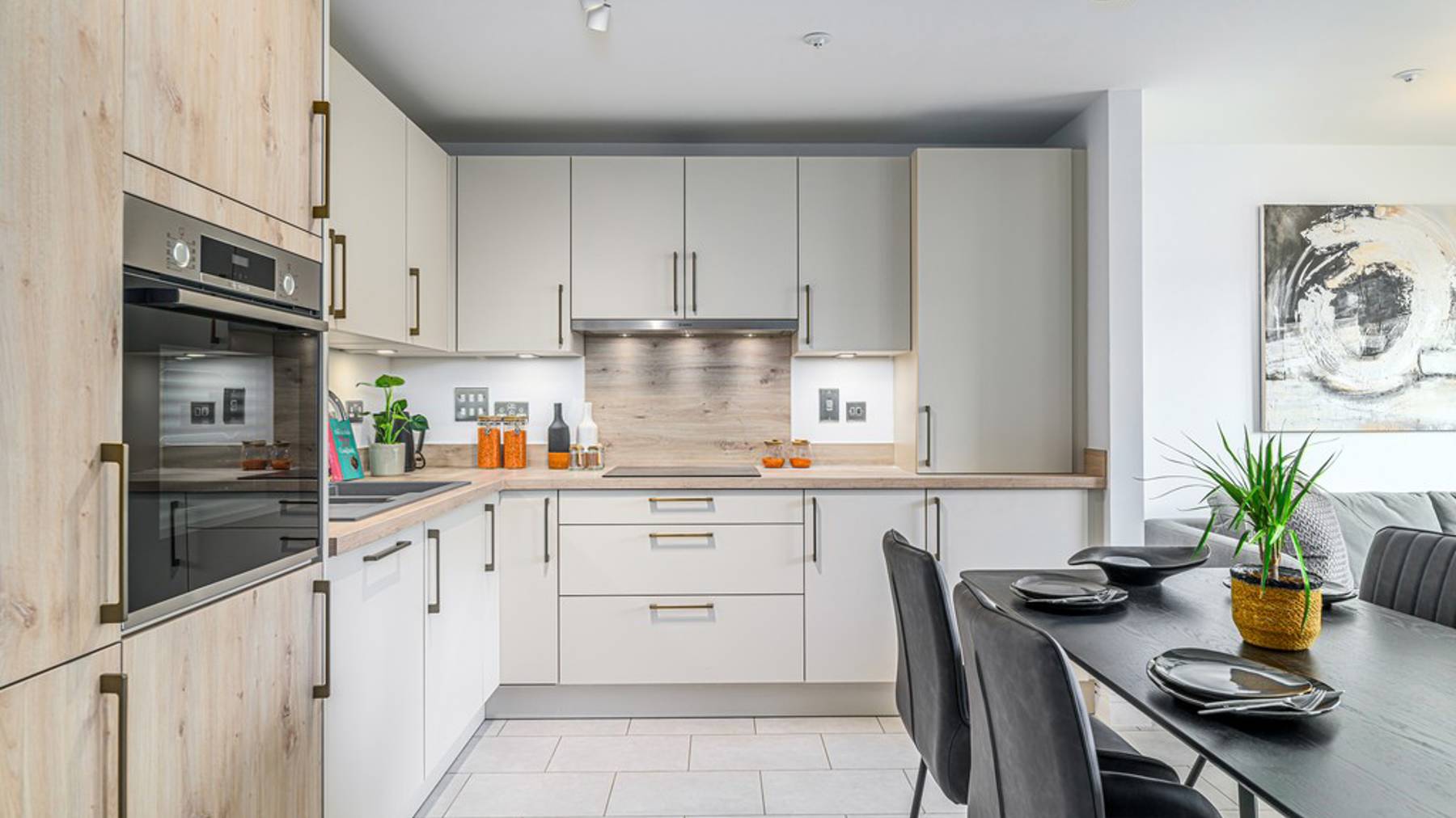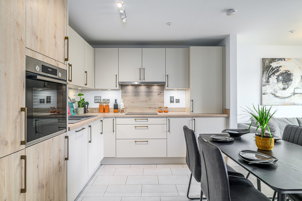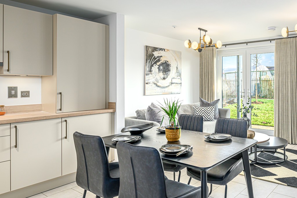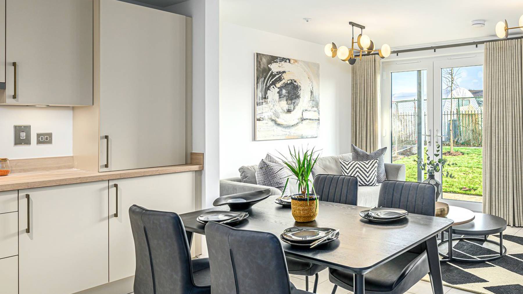 Enjoy flexibility and freedom on three floors, with a fresh and light feel throughout your family home. Down on the ground floor, the well-appointed kitchen/dining room opens out into your garden through patio doors, and there’s a separate study or den – to the front. Your bikes and car have their own places too, with an integrated cycle store and carport.