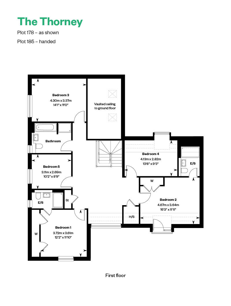 There are five bedrooms on the first floor. Bedrooms 1 and 2 both include stylish en-suites, with built-in wardrobes, and there is definitely scope for converting one of the rooms into a playroom. A luxurious family bathroom completes the floor.