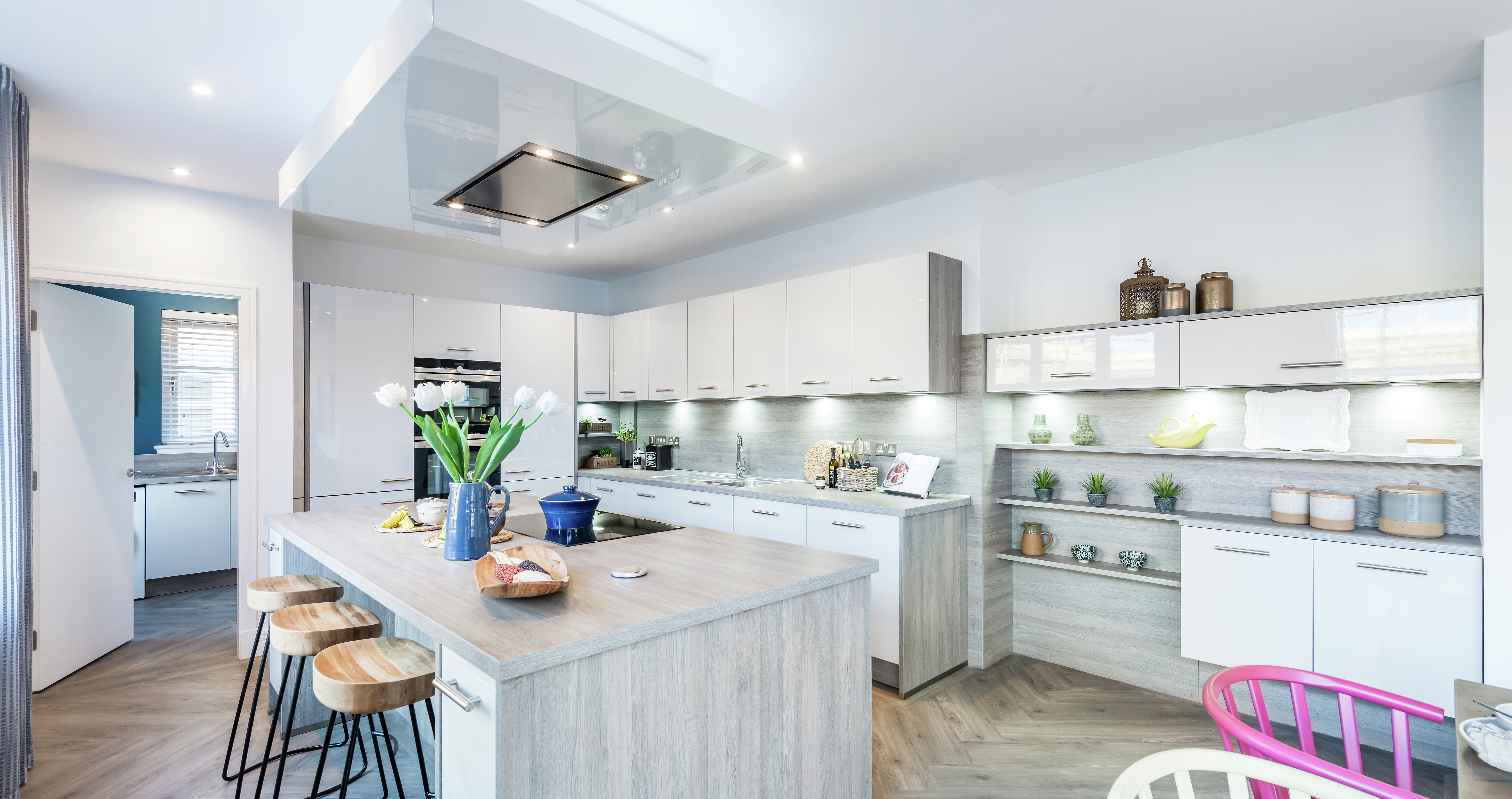 Enjoy flexibility and freedom on three floors, with a fresh and light feel throughout your family home. Down on the ground floor, the spacious, well-appointed kitchen/dining room opens out into your garden through patio doors, and there’s a separate study or den to the front, perfect for working from home, for homework or just for playtime. Not forgetting the handy utility, located next to the kitchen/dining room. Your bikes and car have their own places too, with an integrated cycle and bin store.