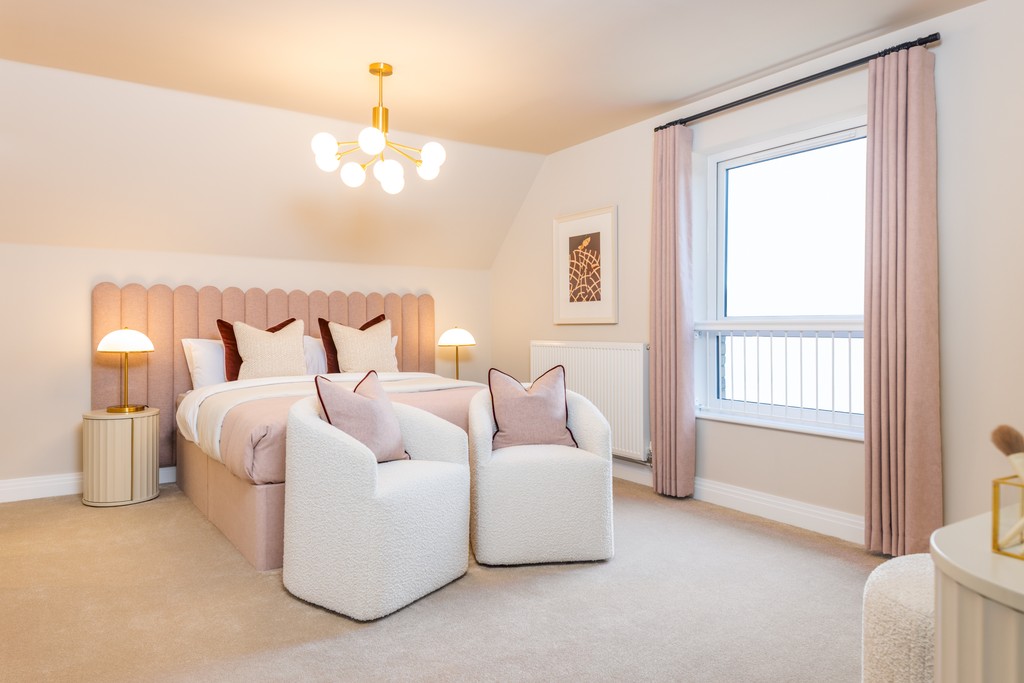Up on the second floor, spacious bedroom one has an ensuite and built-in wardrobes, while Bedroom 3, located opposite, is also well-proportioned.