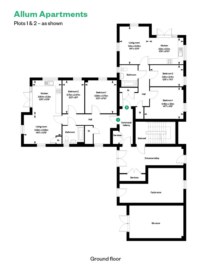Plot 1 & 2 - 2 bedroom, ground floor apartments.