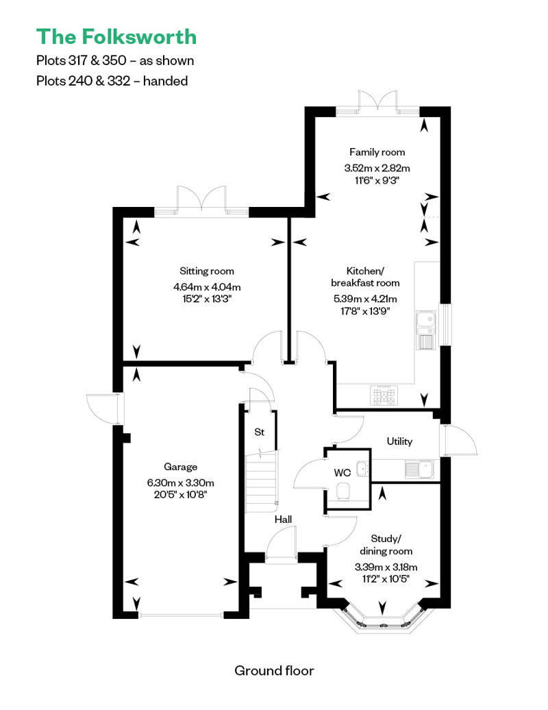 Park your vehicle in the integral garage and walk into the hall. You'll find a generous sitting room with French doors and the kitchen/breakfast/family room, complete with roof lights, integrated appliances and a further set of French doors to the garden, making it the real hub of the home.