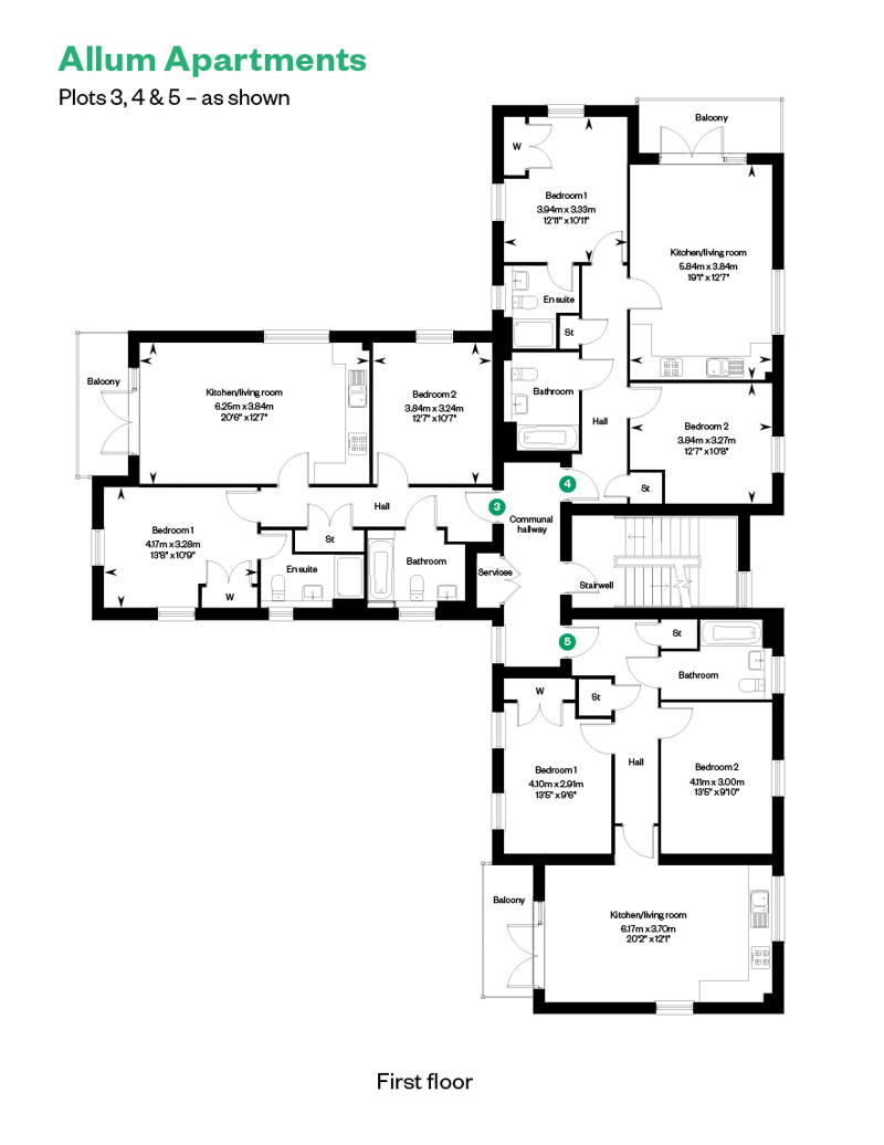 Plot 3 & 4 - First floor, 2 Bedroom apartments