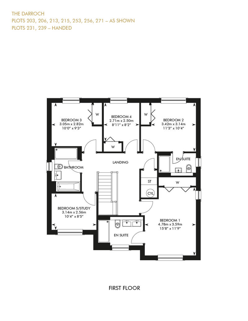With four double bedrooms, two en suites and a fifth bedroom, which can also be used as a study, The Darroch is the perfect home for families in need of a wealth of space.