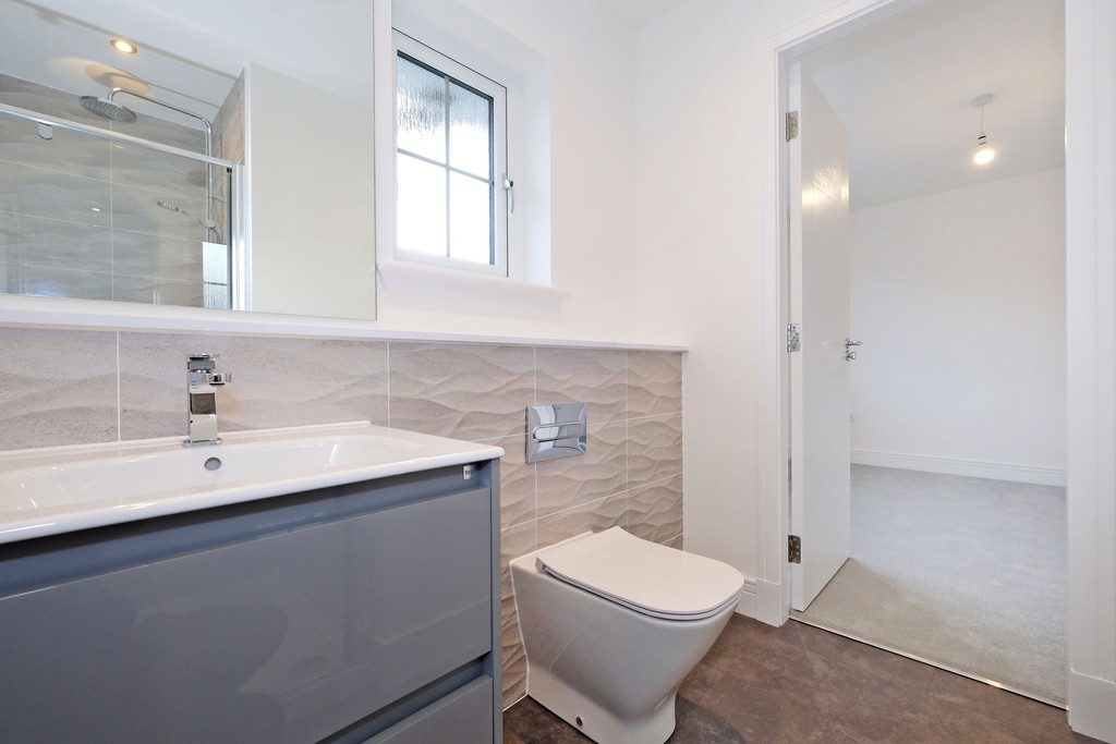 Upstairs, all three bedrooms benefit from fitted wardrobes. The spacious main bedroom features an en suite shower room, while bedrooms 2 and 3 share a stylish family bathroom.