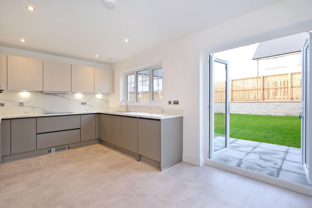 You’ll instinctively feel at home in this delightful three bedroom home, where the whole family can relax in flexible comfort. Occupying the ground floor is a large formal lounge for cosier family evenings, downstairs WC and an open plan studio deigned kitchen/dining area. Double doors from the dining area extend your living space to the patio and rear garden. There is also ample storage space on the ground floor.