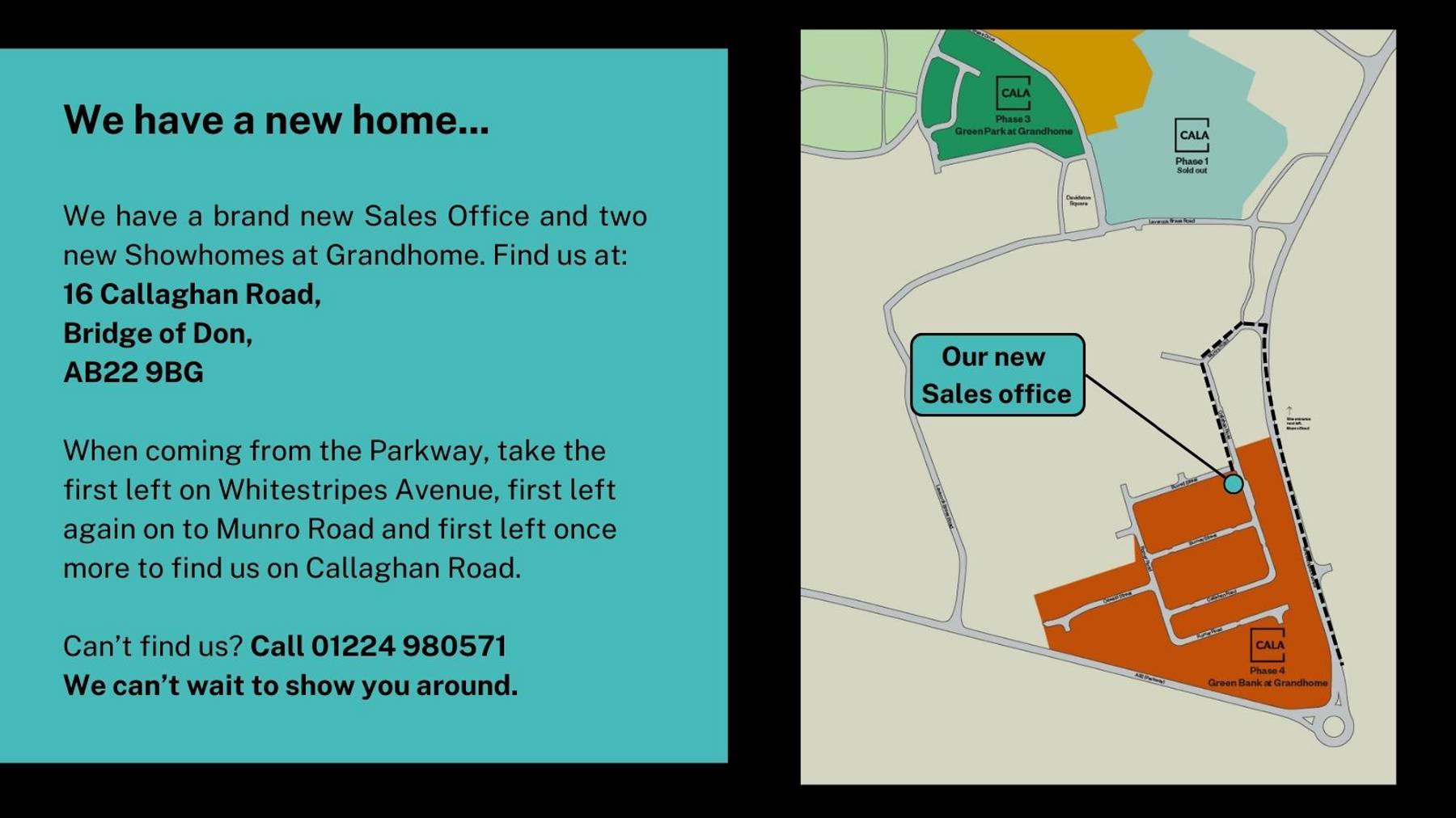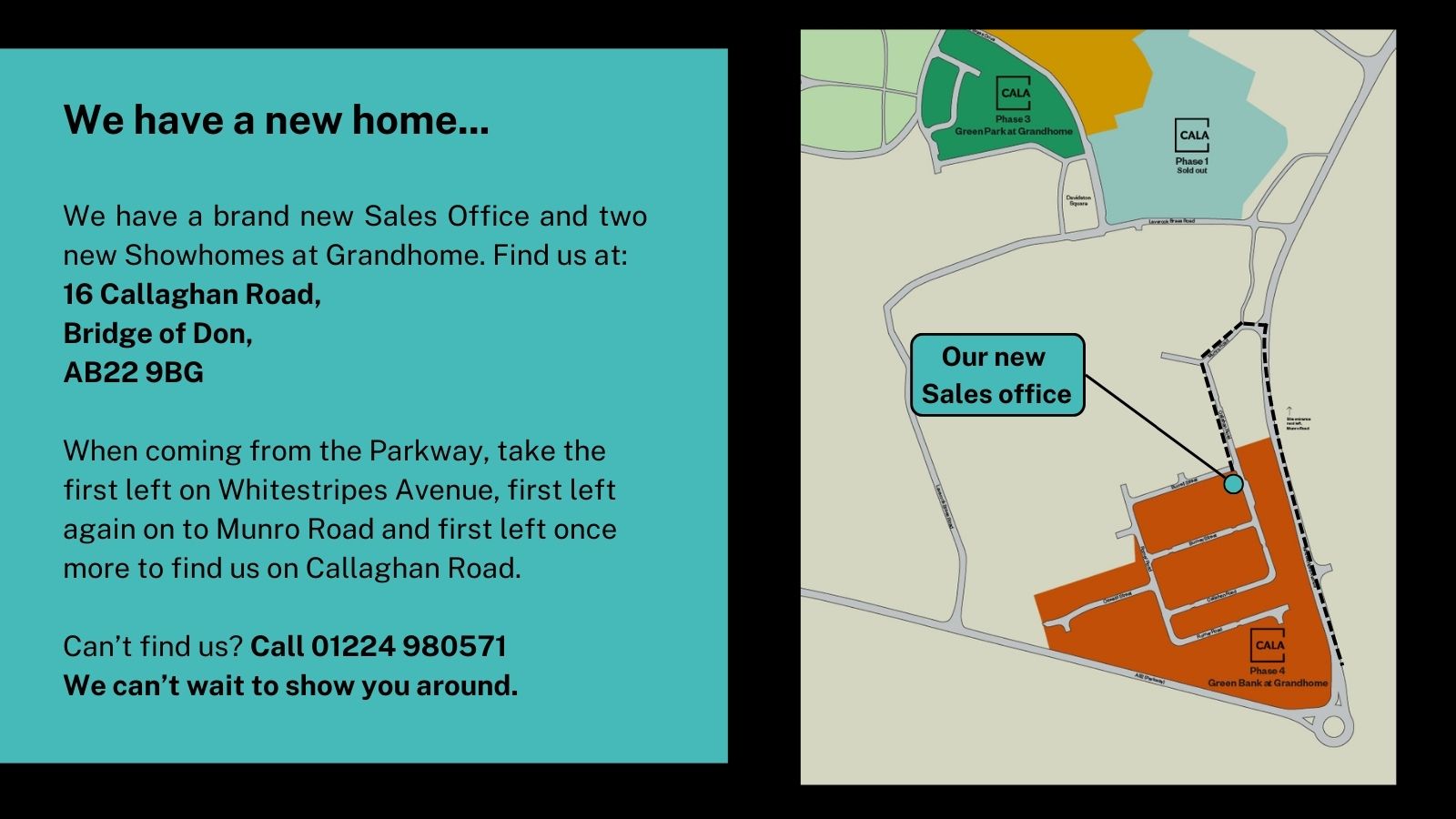 Visit our new Sales Office and Showhomes at 16 Callaghan Road, Bridge of Don, AB22 2BG