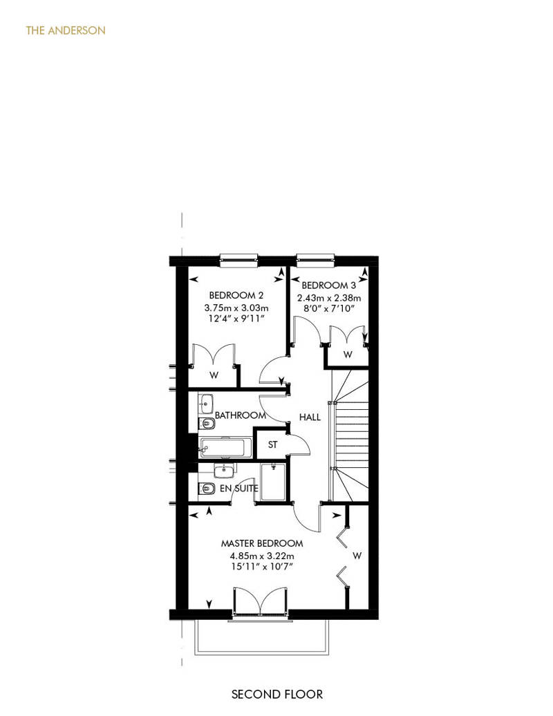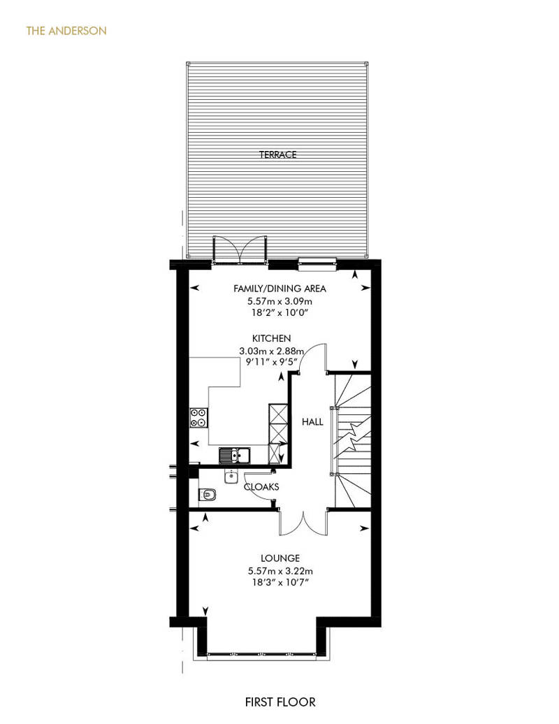 Distinctive and modern, The Anderson features a separate utility room and integral garage and garden on the ground level, together with a flexible sitting room or potential fourth bedroom, a cloakroom and handy storage. The open plan kitchen and family/dining area provides an informal setting upstairs, while the elegant lounge boasts double doors and an impressive bay window. The en suite master bedroom boasts Juliet balcony while the two further bedrooms feature fitted wardrobe. A stylish family bathroom and second cloakroom finish the home.