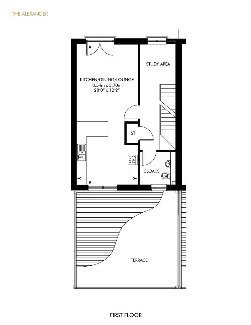 Modern, flexible and stylish, this elegant townhouse comprises a family room, fourth bedroom and shower room on the ground floor, as well as a utility room with access to the double car port at the rear. Upstairs the large open plan kitchen/dining/lounge area boasts a Juliet balcony and sliding doors onto a spacious private terrace. Other handy features include a designated study area and cloakroom, while on the top floor, the beautiful en suite master bedroom is joined by two further bedrooms and the family bathroom.