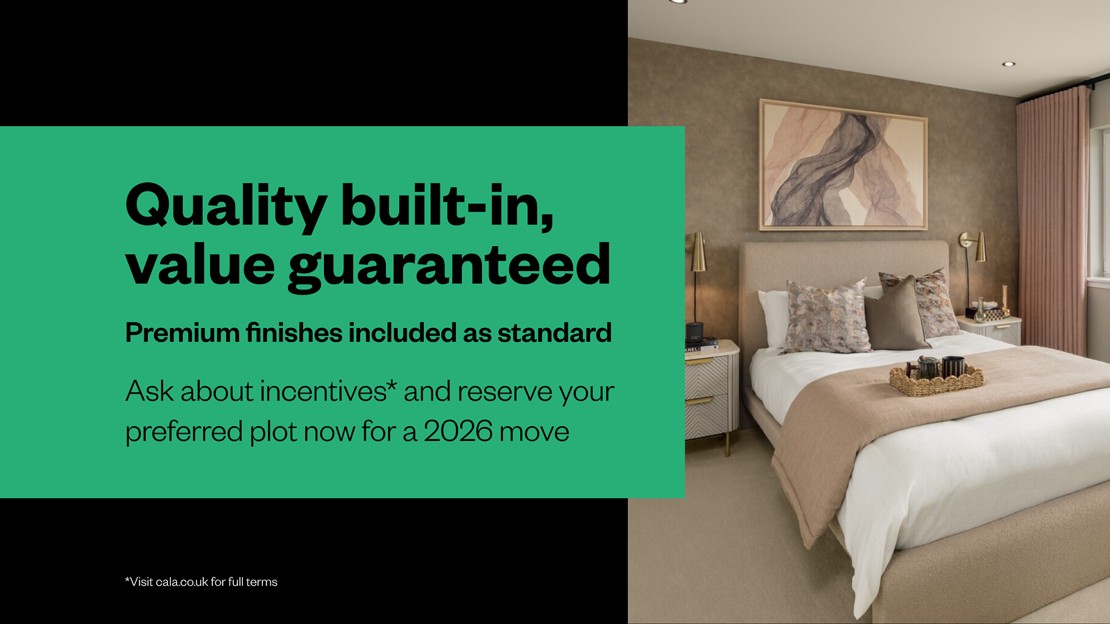 Move into a new Cala home without a chain - avoiding estate agent fees and survey/home report costs in the process.