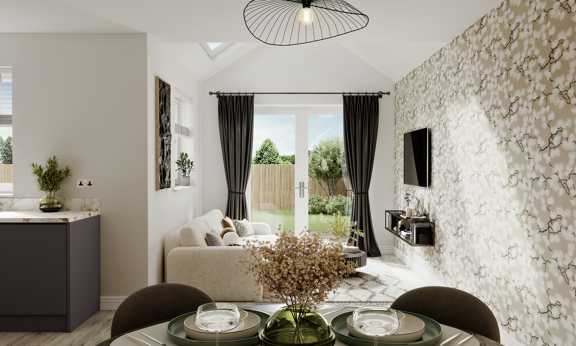 Attractive linear design means that the living spaces in this home flow perfectly. The hallway opens onto a spacious front sitting room. The open plan kitchen diner is fully fitted with high quality appliances, which extends to a light and airy family room opening out to the rear garden. Ideal for eating and entertaining together, for play and for relaxation. There’s also handy storage and a w/c on this floor.