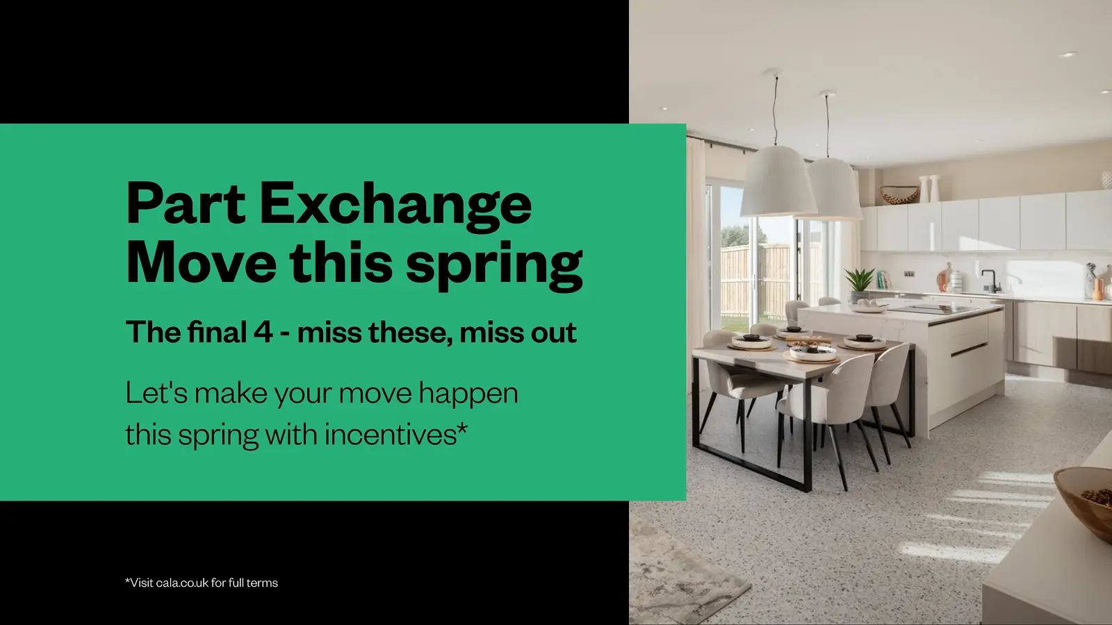 Move into a new Cala home without a chain - avoiding estate agent fees and survey/home report costs in the process.