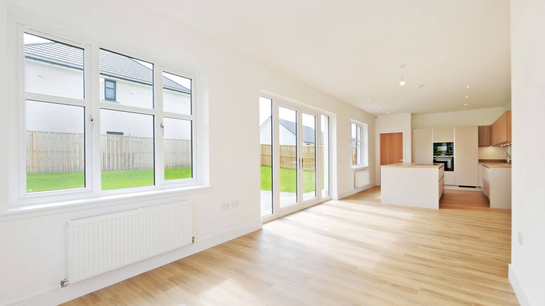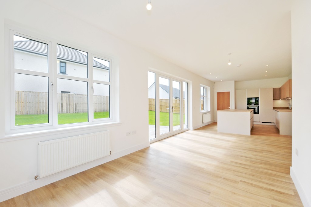 This contemporary five bedroom home has all the family space you need. Most notably, its large open plan kitchen, family and dining area with French doors, as well as a separate utility room linking the integral double garage.