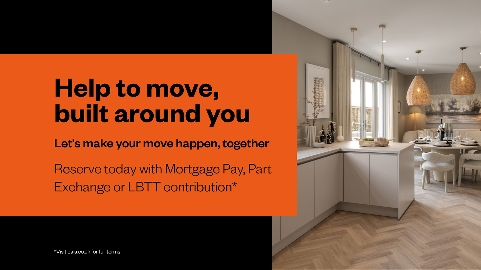 Move into a new Cala home without a chain - avoiding estate agent fees and survey/home report costs in the process.