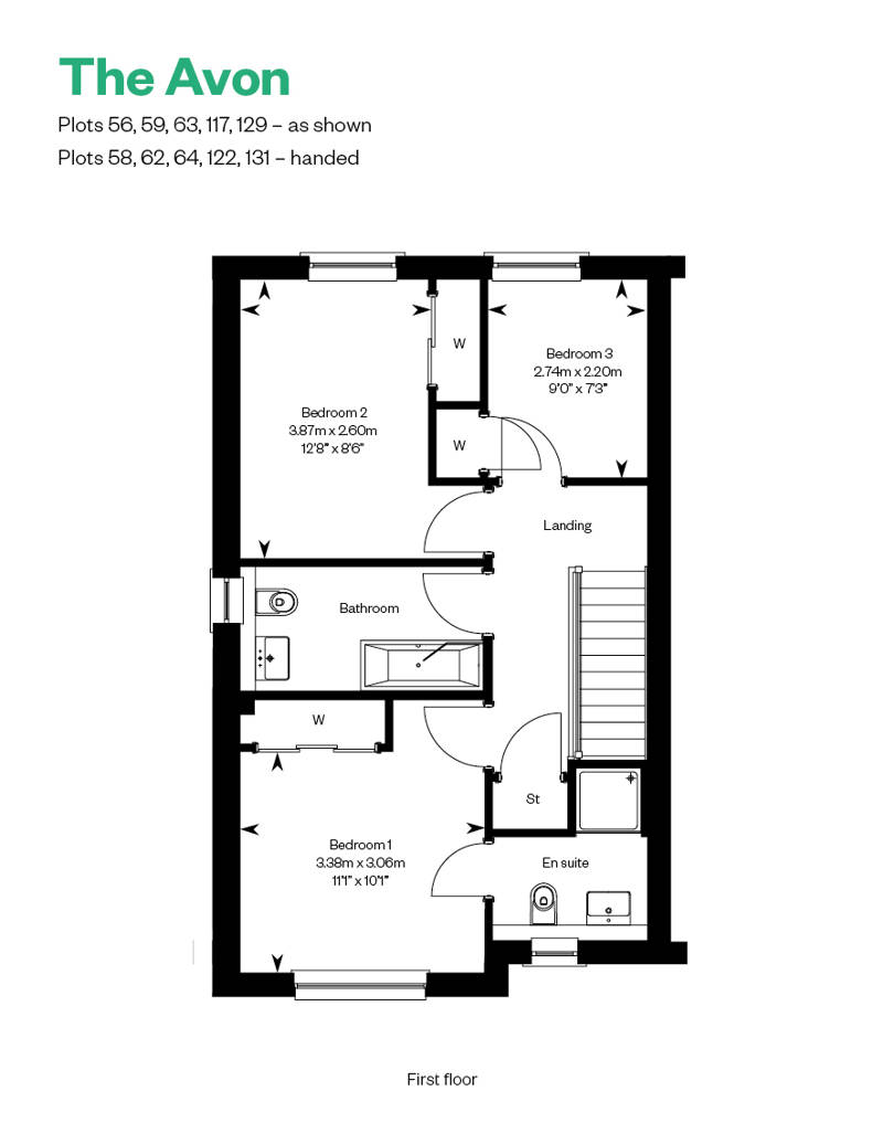 The Avon is a stylish 3 bedroom family home. The ground enjoys a spacious open plan kitchen and dining area, complete with French doors and fully integrated appliances. The private lounge to the front of the home is the perfect space for enjoying some quiet time with friends and family. Upstairs, two of the bedrooms benefit from fitted wardrobes with sliding doors as well as master en suite.