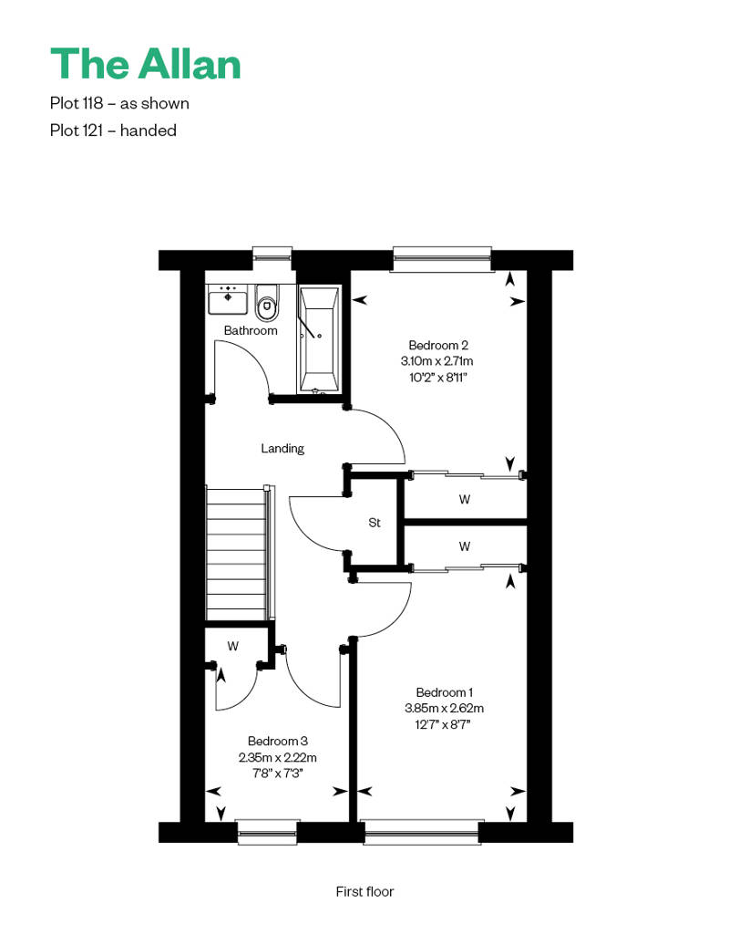 The Allan is a stylish 3 bedroom family home. The ground floor enjoys a spacious open plan kitchen and dining area, complete with French doors and fully integrated appliances. The generous lounge to the front of the home is the perfect space for both entertaining & enjoying some quiet time with friends and family. Upstairs, all 3 bedrooms benefit from fitted wardrobes and a designer family bathroom and additional storage completes the home.
