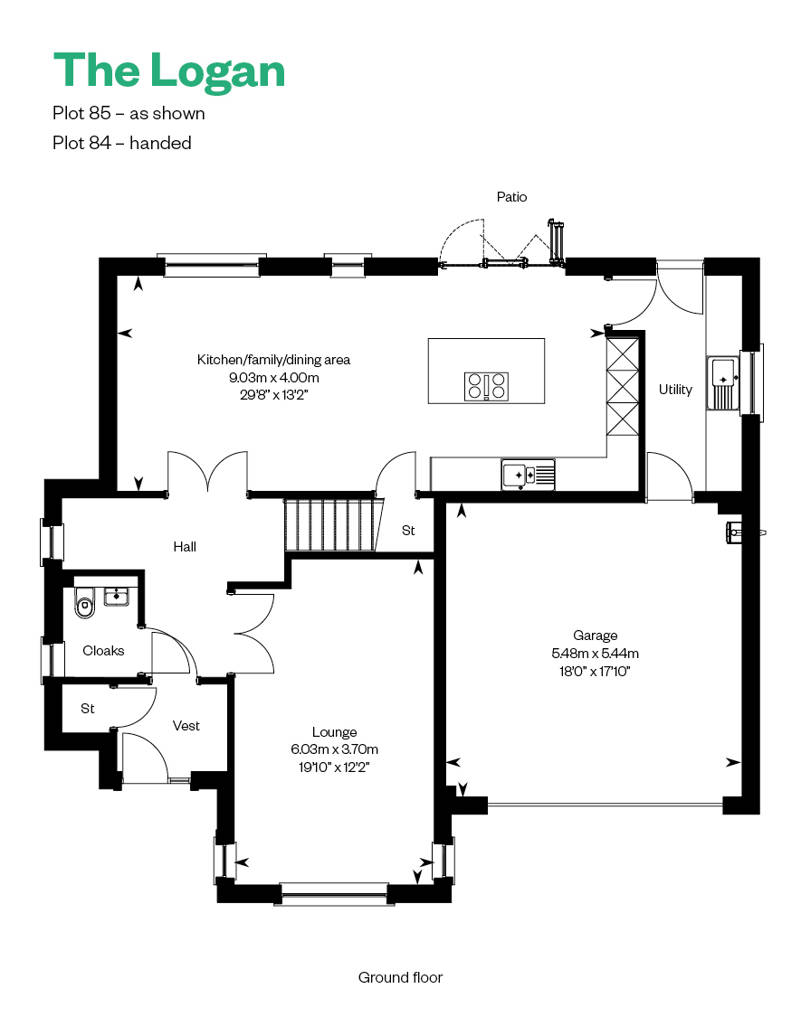 The Logan offers an exceptionally spacious open plan family/dining room and kitchen to the rear as a hub for family life, while a large formal lounge to the front of the home is excellent for entertaining. The spectacular galleried landing sweeps round to five bedrooms, two with an en suite, and a spacious family bathroom.
