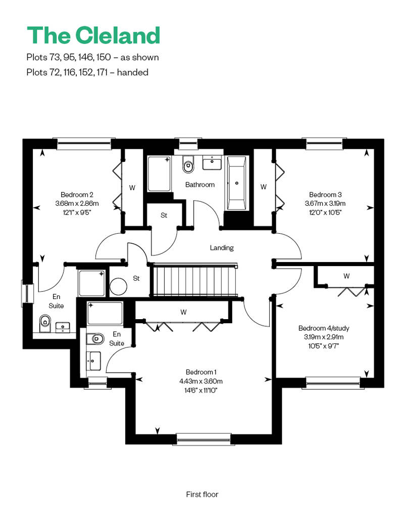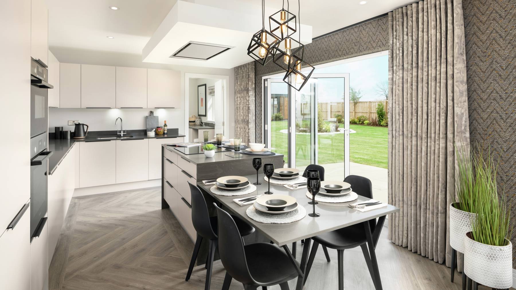 The four bedroom Cleland features a spacious formal lounge to the front with an impressive combined family/dining area and kitchen to the rear, where large bi-fold patio doors open out to the decked area and garden. Upstairs the spacious landing leads to a family bathroom and four generous bedrooms, two of which are en suite, with fitted wardrobes to all.