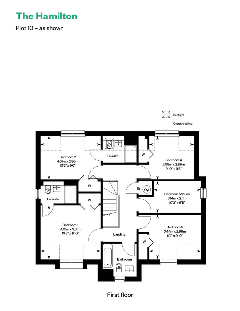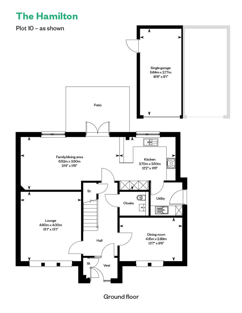The Hamilton has all the social space you could wish for. Mix good food and company in the extensive kitchen and living area, flowing into the rear garden through French doors and featuring a separate utility room. The generous lounge is accompanied by a formal dining room to entertain guests, along with a downstairs cloakroom, ample storage and detached single garage. Two en suite bedrooms with fitted wardrobes are joined upstairs by a luxury bathroom and three further bedrooms, one of which could also be used as a home office.