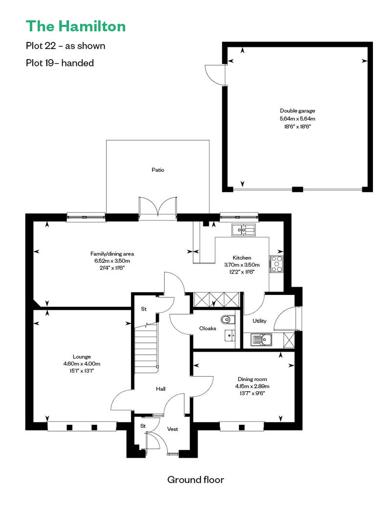 The Hamilton has all the social space you could wish for. Mix good food and company in the extensive kitchen and living area, flowing into the rear garden through French doors and featuring a separate utility room. The generous lounge is accompanied by a formal dining room to entertain guests, along with a downstairs cloakroom, ample storage and detached single garage. Two en suite bedrooms with fitted wardrobes are joined upstairs by a luxury bathroom and three further bedrooms, one of which could also be used as a home office.