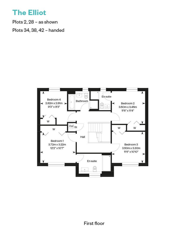 The spacious Elliot offers four large bedrooms, two of which are en suite, and a high specification family bathroom, all accessed from a stunning galleried landing on the upper floor.