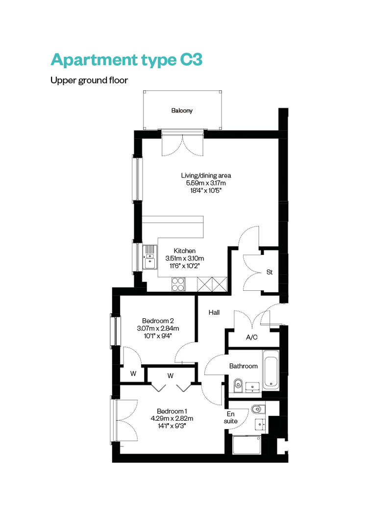 This spacious and light-filled upper ground floor apartment features 2 generous bedrooms, an open plan kitchen/living/dining area and Cala's high specification included throughout.