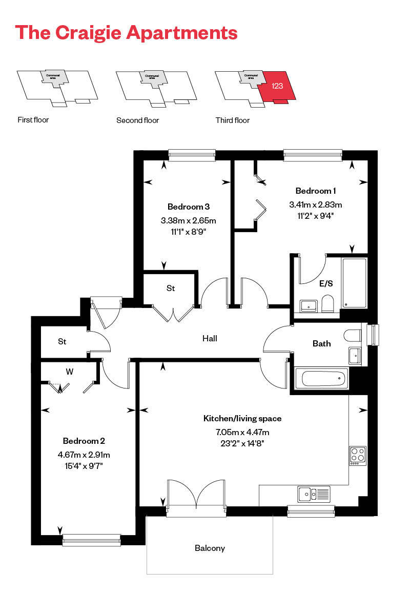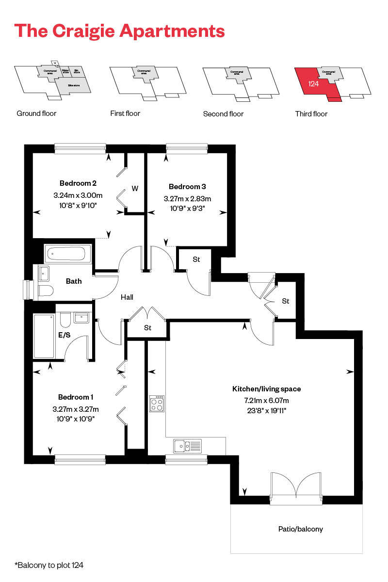 Plot 124: Craigie Apartment – 3 Bed Top Floor - 3 Bedroom Home