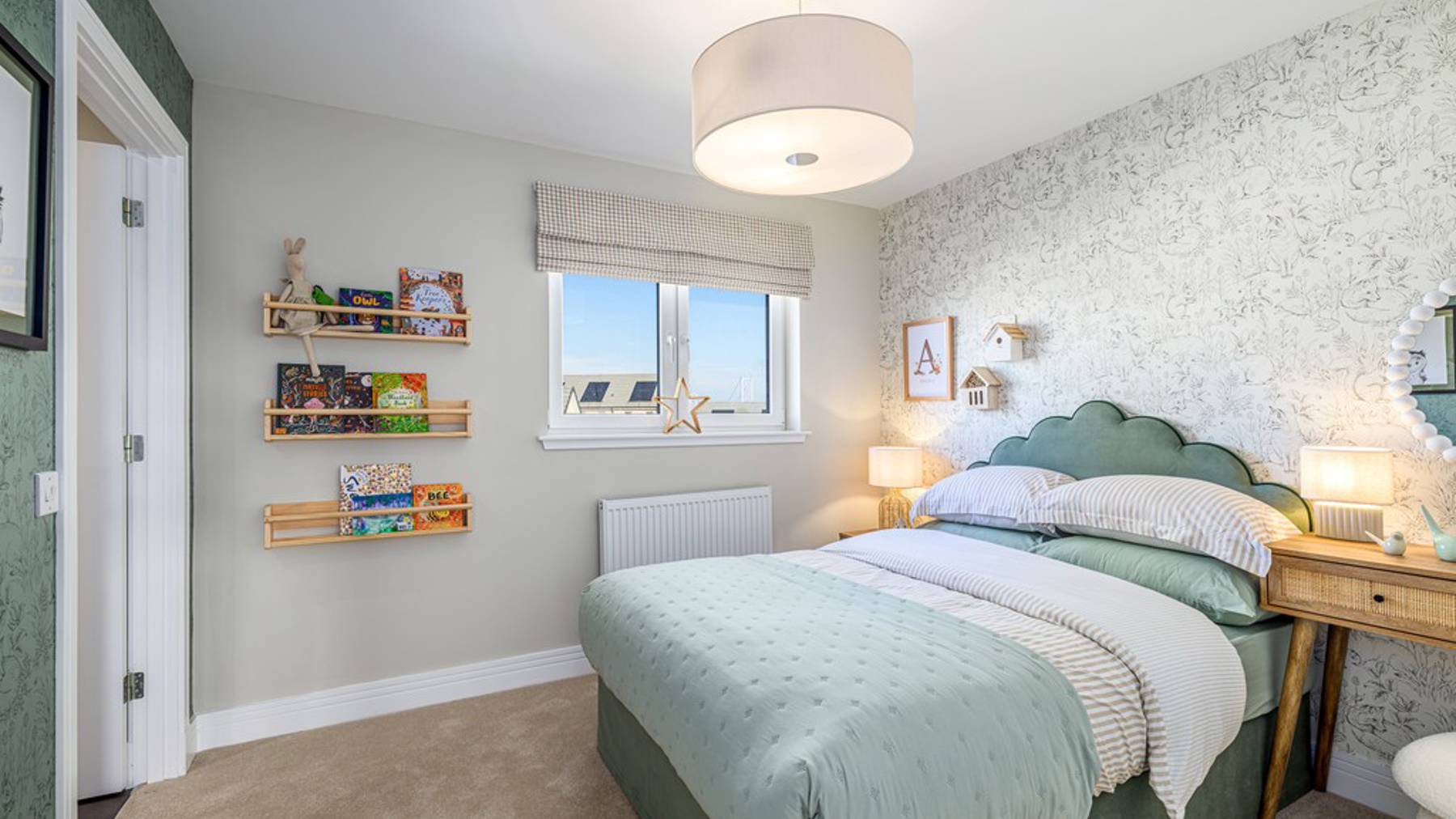 A spacious bedroom with fitted wardrobes and additional flexible lounge feature on the first floor, along with your contemporary family bathroom.