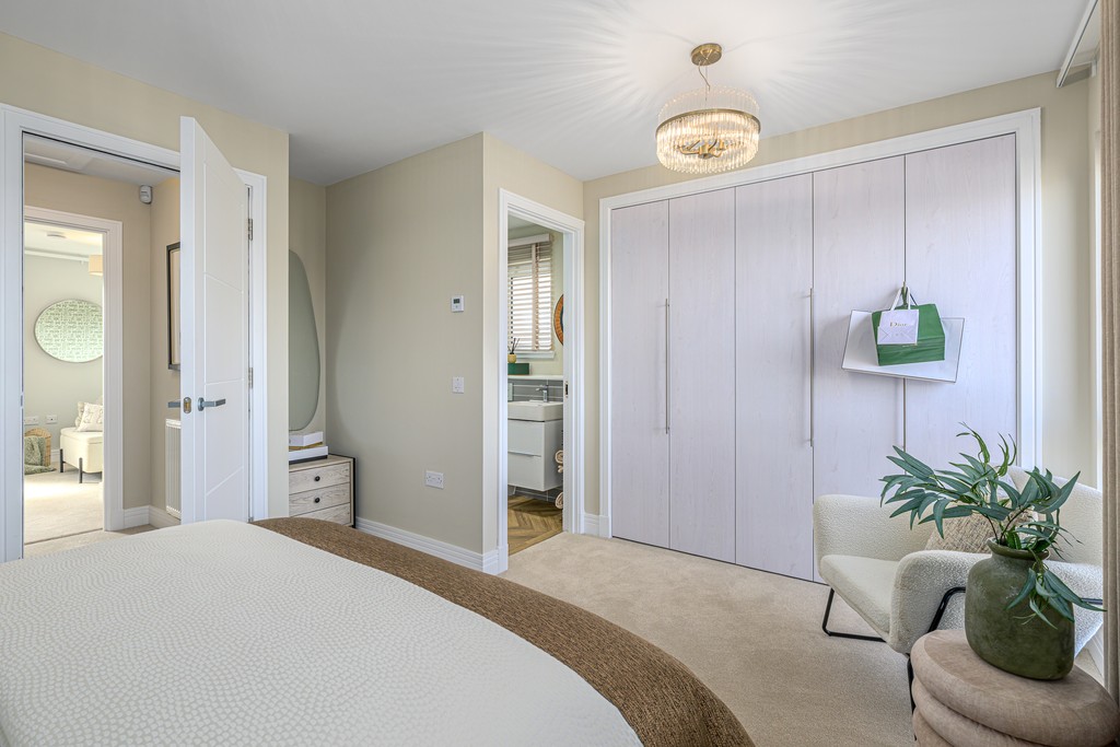 A spacious bedroom with fitted wardrobes and additional flexible lounge feature on the first floor, along with your contemporary family bathroom.