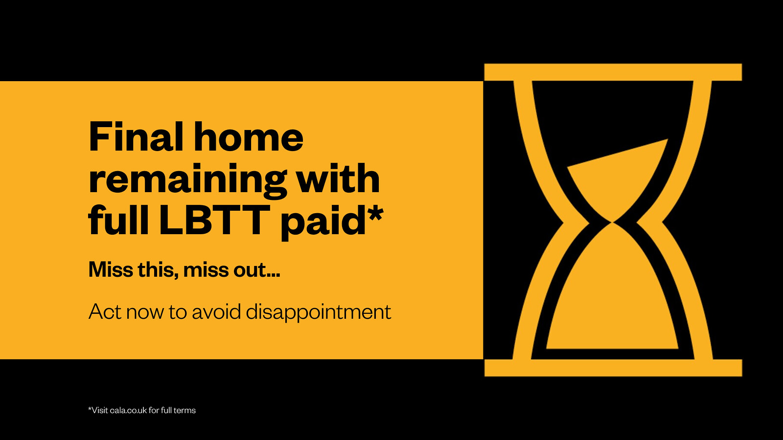 We know there's a lot to think about when moving house, and so we’d like to do everything we can to help make moving to your dream Cala home easier and more affordable. Including paying full LBTT on our final home at St Crispin’s Court when you reserve by 30th November 2025. If you have home to sell, why not ask how we can help you with that too?