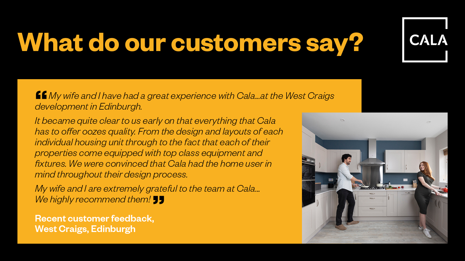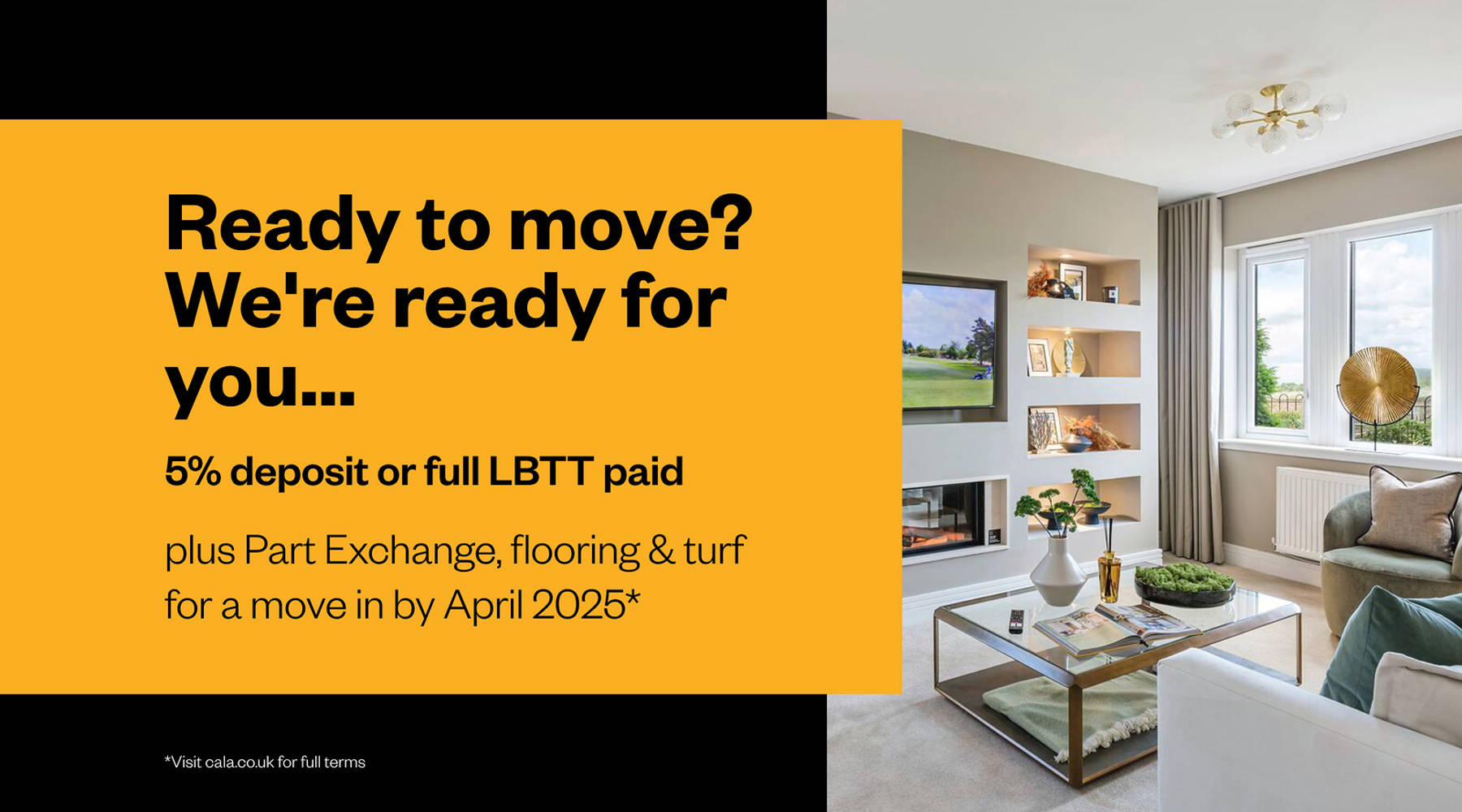 Move into a new Cala home without a chain - avoiding estate agent fees and survey/home report costs in the process.