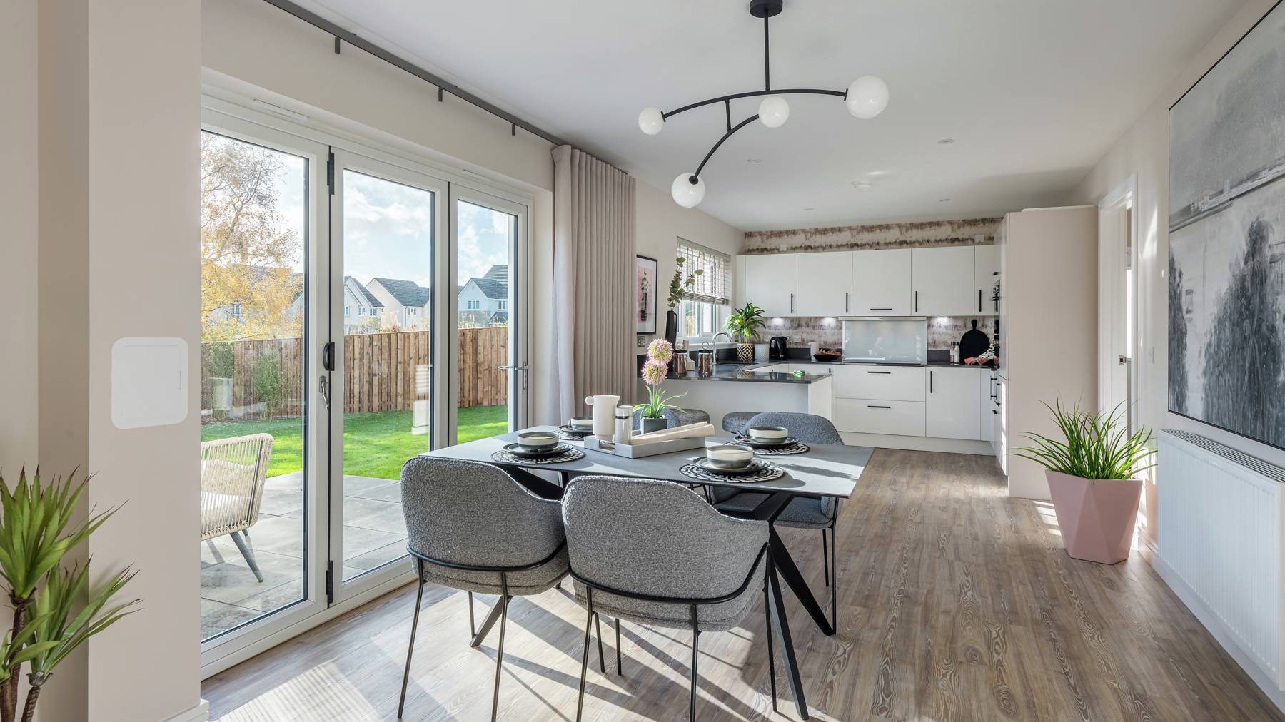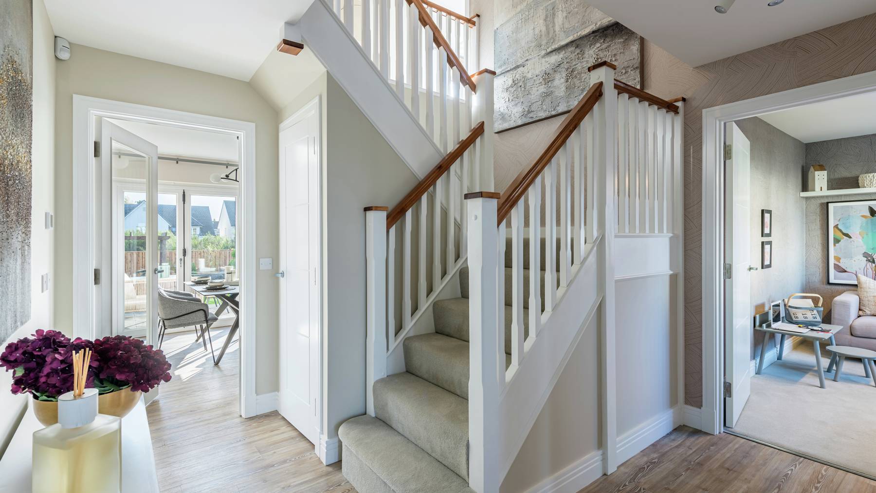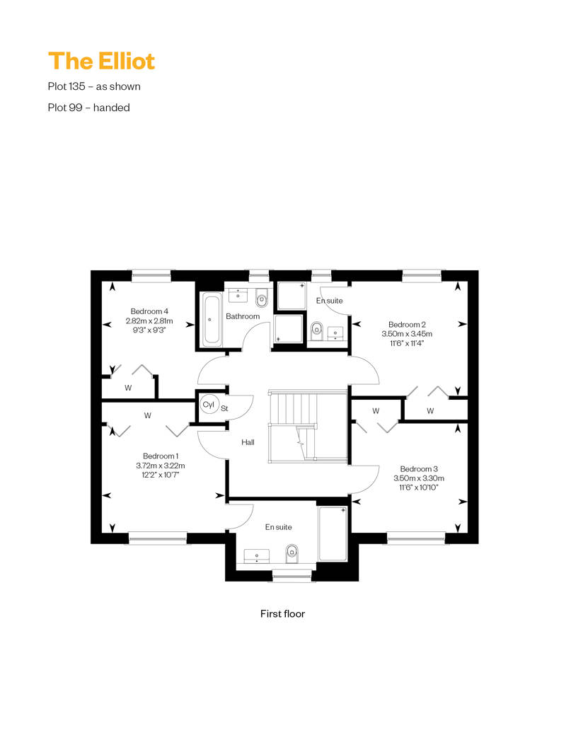 The Elliot is a stunning family home offering wall-to-wall comfort and clean, contemporary style. It can be a social hub of activity, with the open plan family area and kitchen leading to the rear garden through bi-fold doors. There is also a more formal lounge to the front of the home offering ample entertaining spaces throughout. It can also provide some much needed personal space with a private study, superb family bathroom and four double bedrooms, two of which are en suite. All centred around a light, galleried landing and complemented by a single or double detached garage.