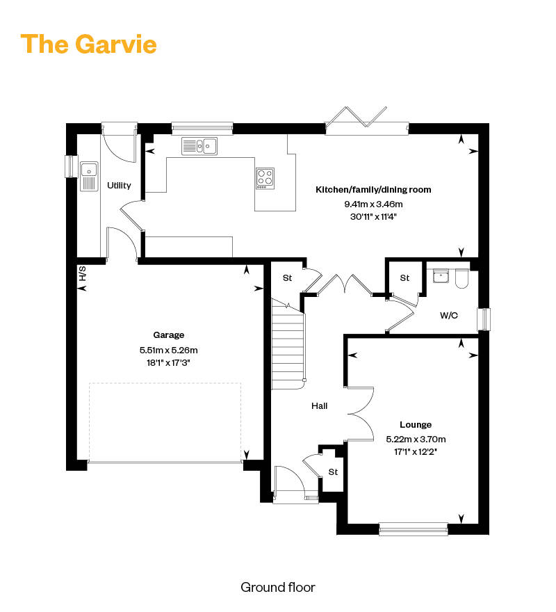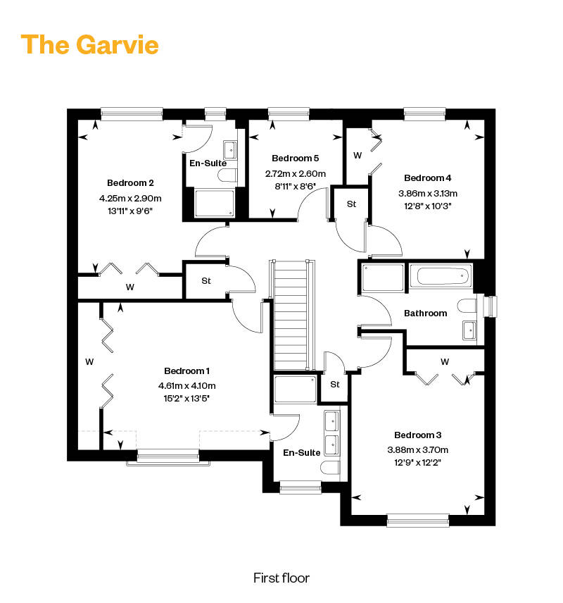 Comprising five spacious bedrooms, two with an en suite and impressive walk-in wardrobe, The Garvie has been designed for flexible family luxury. Featuring double doors, the large lounge is accompanied by an open plan kitchen and family/dining area with bi-fold doors to the rear garden, a separate utility room, cloakroom and integral double garage. All complemented with a four-piece family bathroom suite, plus the fifth bedroom can be used as a private study for home working.