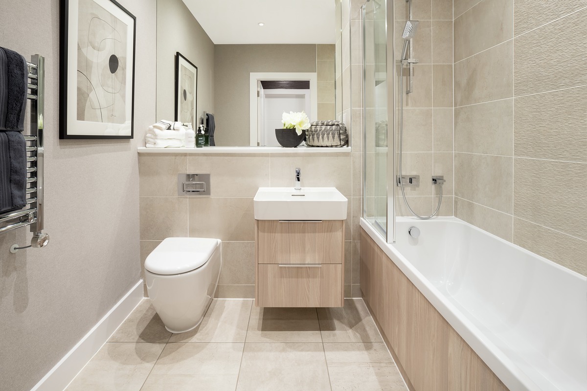 The sizeable bedroom is West facing for plenty of natural light, and features sleek fitted wardrobes whilst a contemporary designer bathroom offers a delightful space to unwind.